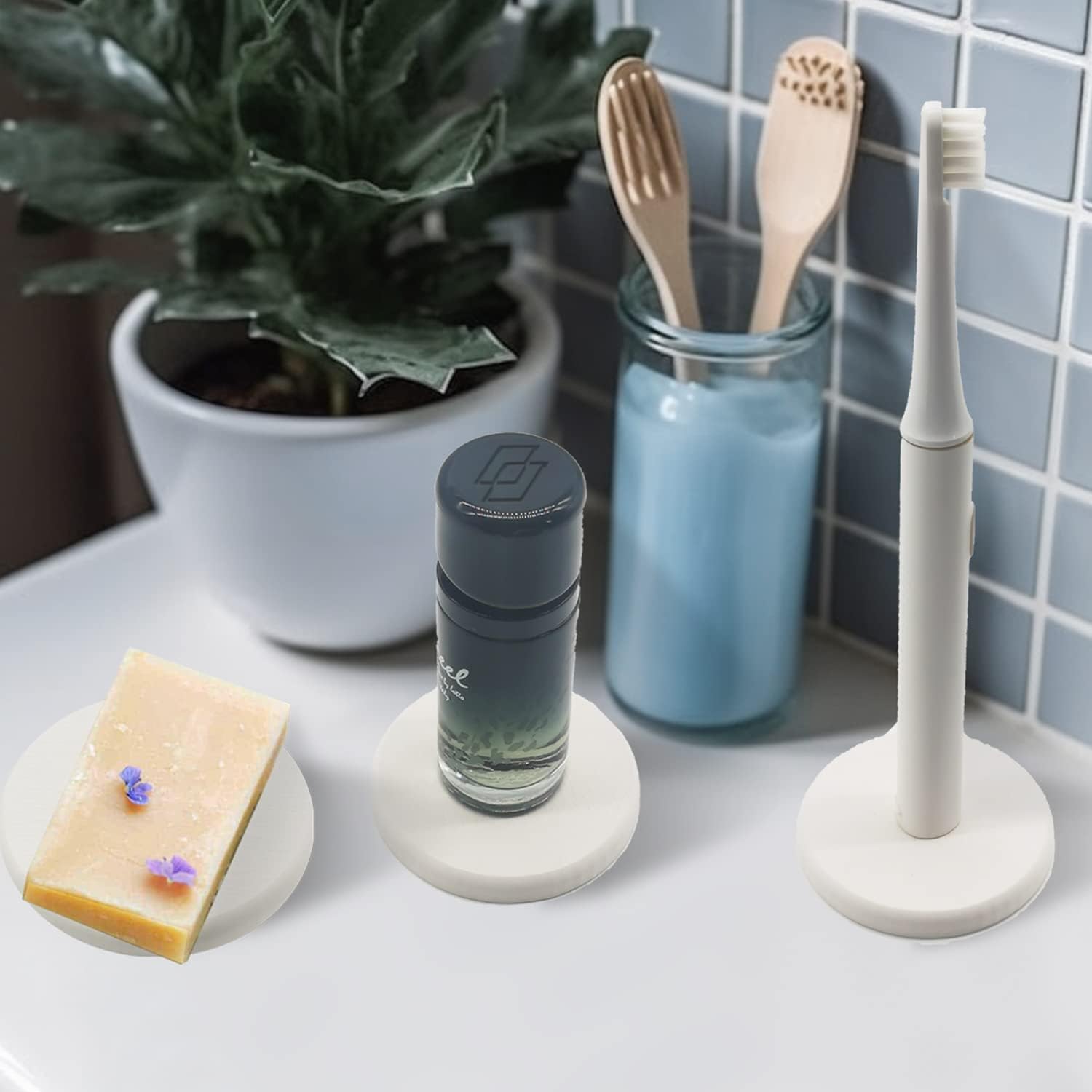Mucco Water Absorbing Stone Tray for Sink, Water Absorbent Diatomite Coasters, Premium Diatomaceous Earth Soap Holder Dish,Fast Drying Stone Sink Tray for Hand soap & Cups & Drinks Bottles (3 White)