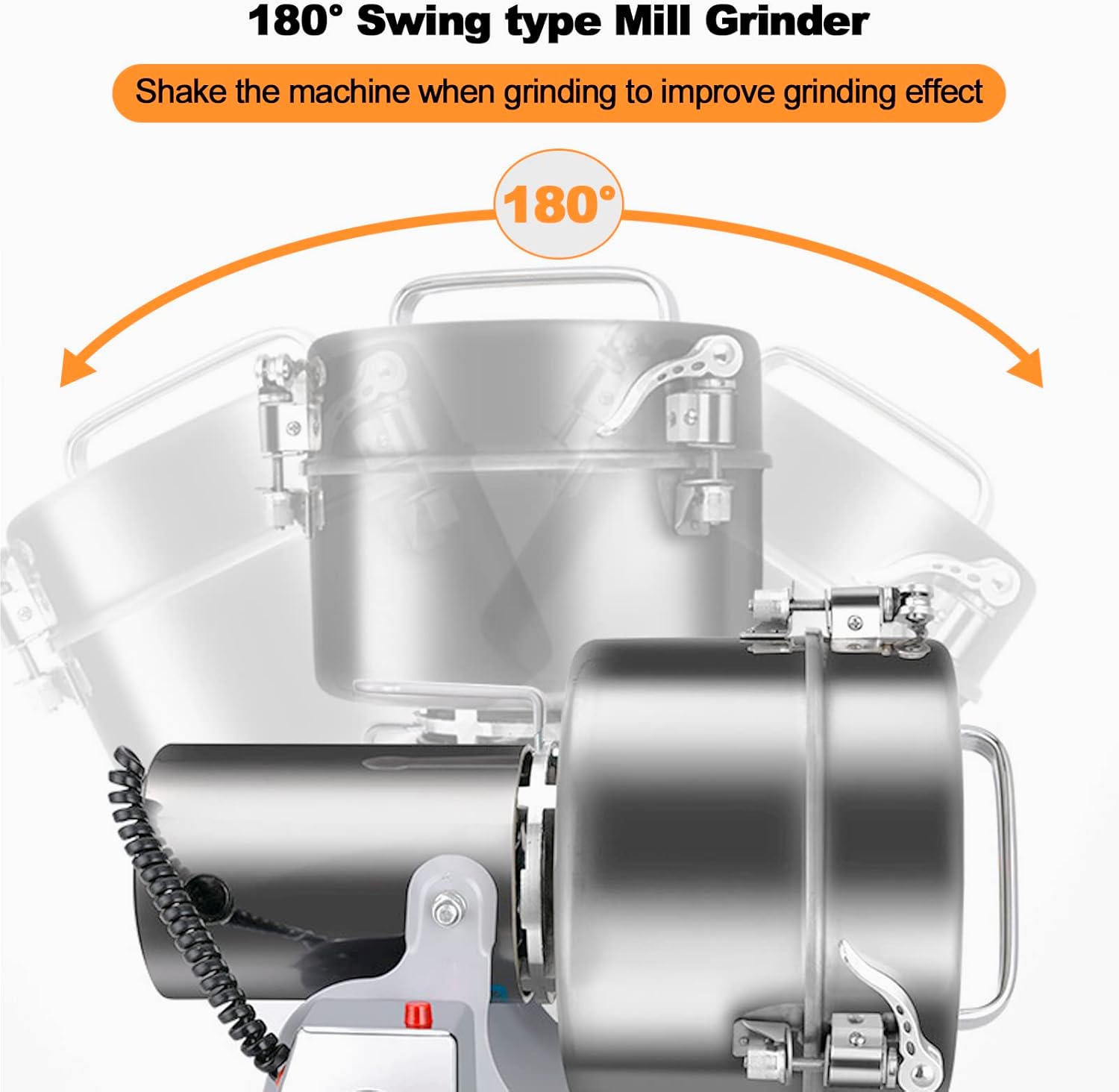 - 180Β° Swing type Mill Grinder:The electric grain grinder swing type design not only improves grinding effects but also makes pouring more convenient,normal grains only needs 30s to be ground,except hard material takes 2-3min to grind.