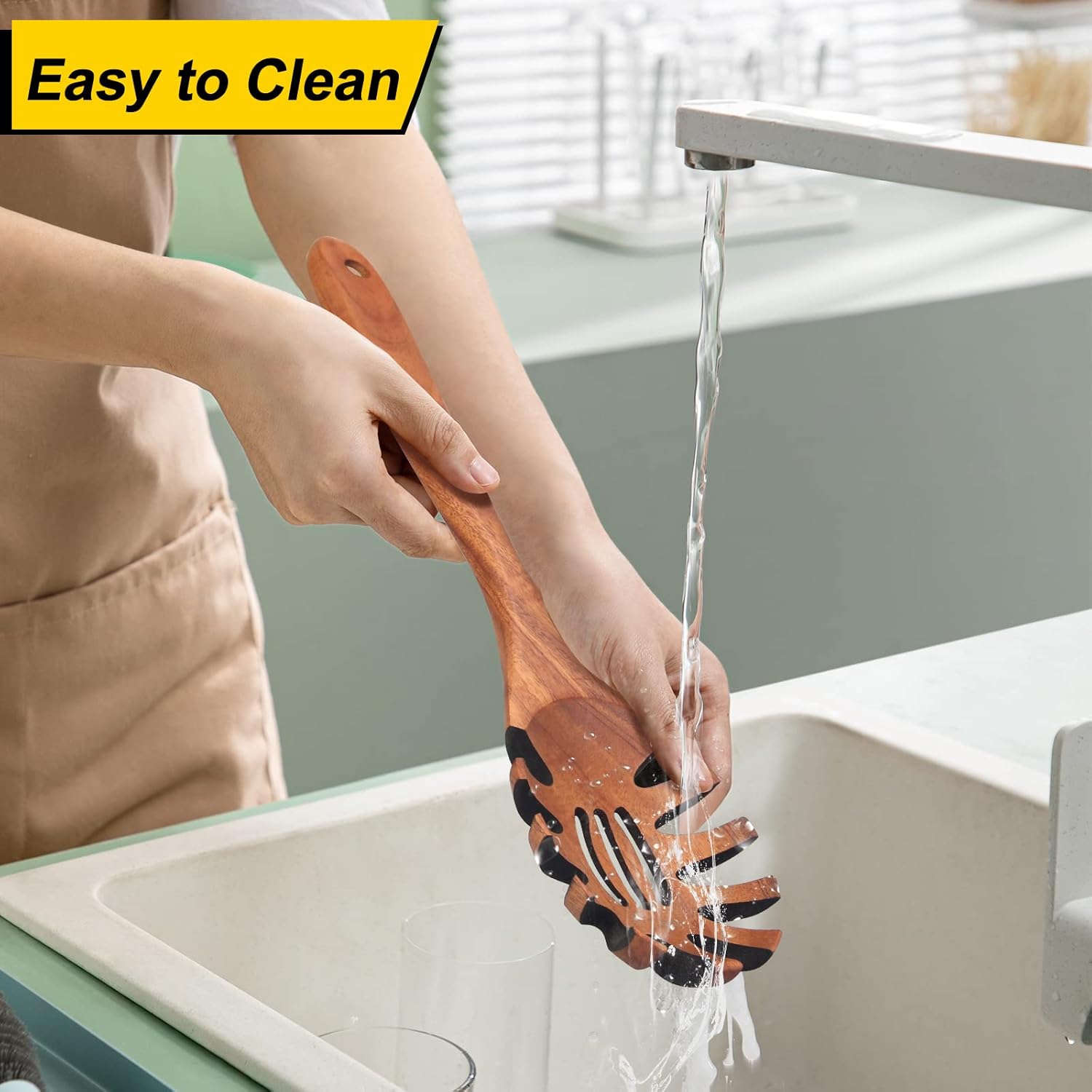 Wooden Pasta Spoon with Teeth Spaghetti Fork Tongs 12.5 Inch Pasta Forks Serving Utensils Acacia Wood Spaghetti Server Spoons Ladle Pastas Spatula Kitchen Tool Spaghettis Scoop Strainer Noodle Spoon