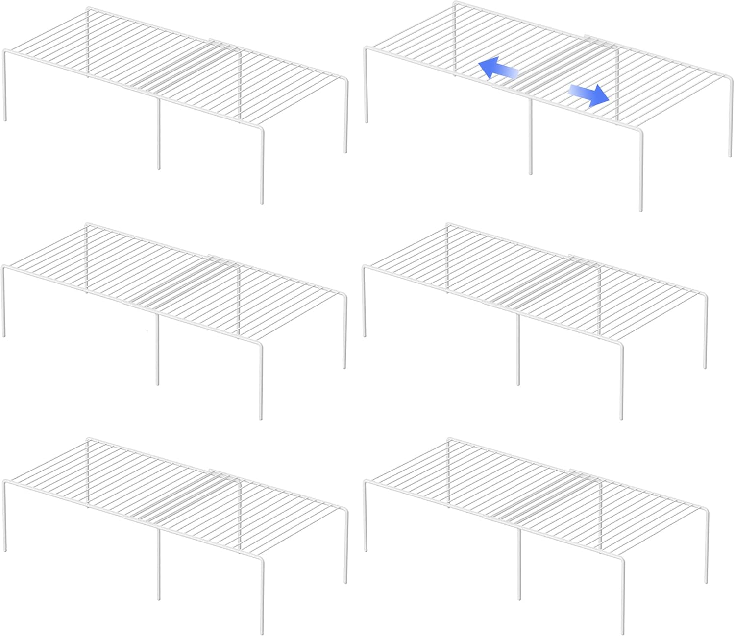 Redrubbit Cabinet Storage Shelf Rack, Expandable Metal Rustproof Kitchen Counter and Cabinet Shelf, Storage Rack Organizer Space Saver for Kitchen, Fridge, Cabinet, Bathroom, White, Set of 6