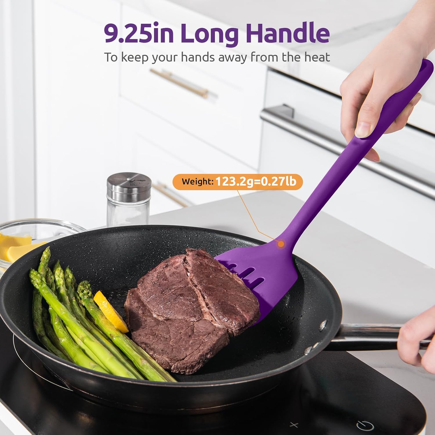 600ºF Heat Resistant Slotted Turner: U-Taste 13.6in Silicone Kitchen Spatula Flipper, 3.74in Wide Food Grade Flexible Thin Rubber Cooking Utensil for Egg, Pancake, Cookie in Nonstick Cookware (Purple)