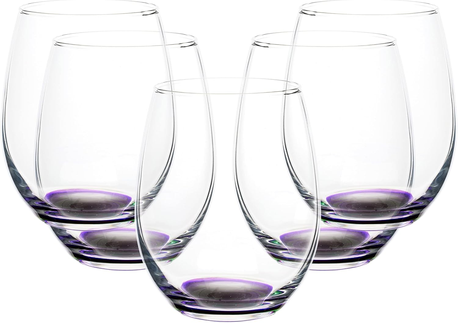 - STEMLESS BASE FOR STABILITY - The low center of gravity and broad base reduces the risk of tipping over and eliminates the risk of stem breakage which is common among traditional wine glasses.