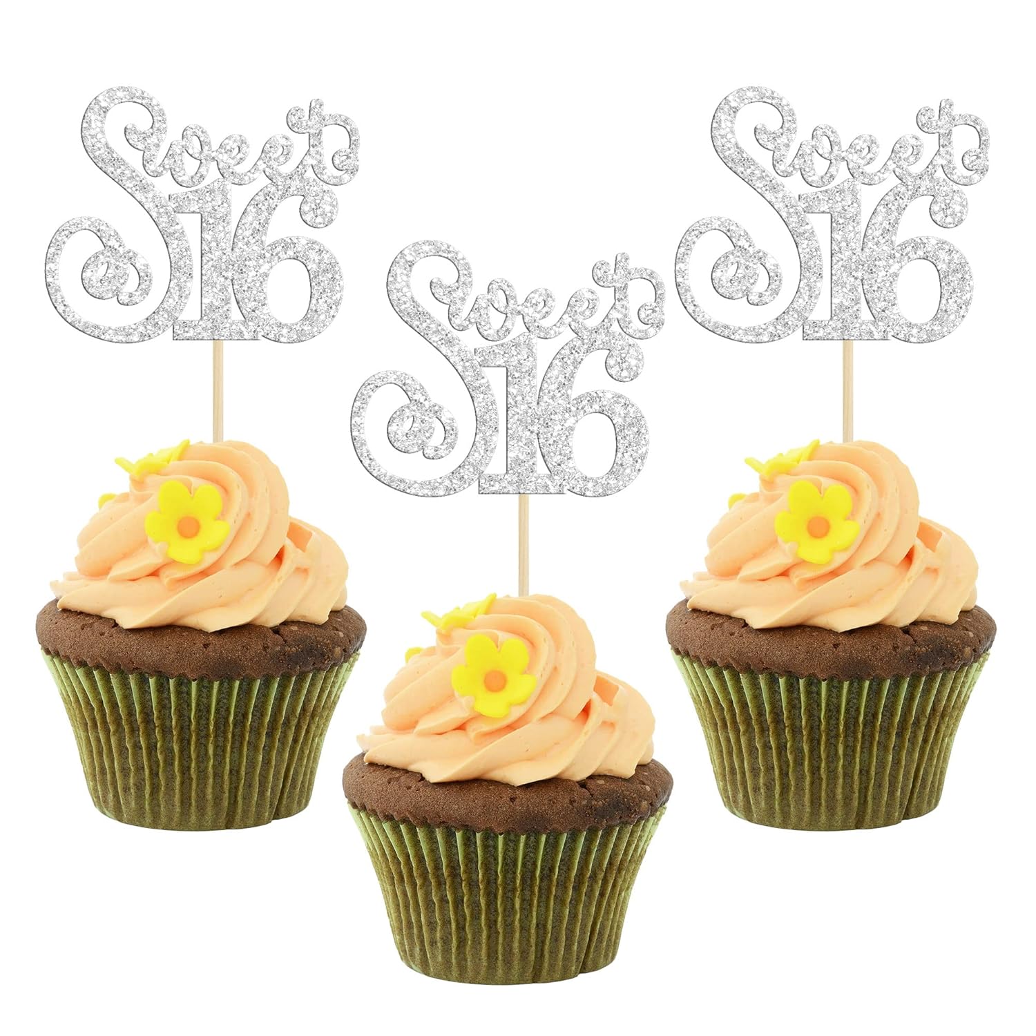 - ๐๐These Sweet 16 Cupcake Toppers are so cute and good for 16th birthday theme party, 16th anniversary theme party, 16 fabulous theme party cupcake decorations. They can make your cupcake more attractive and bring the fun to your party. You can also apply them for ice cream, fruits, cookies and other desserts.