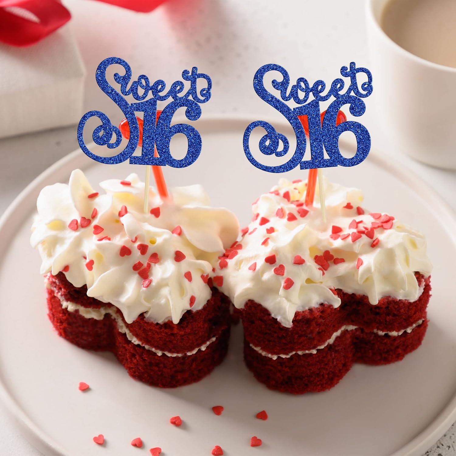 - ๐๐These Sweet 16 Cupcake Toppers are so cute and good for 16th birthday theme party, 16th anniversary theme party, 16 fabulous theme party cupcake decorations. They can make your cupcake more attractive and bring the fun to your party. You can also apply them for ice cream, fruits, cookies and other desserts.