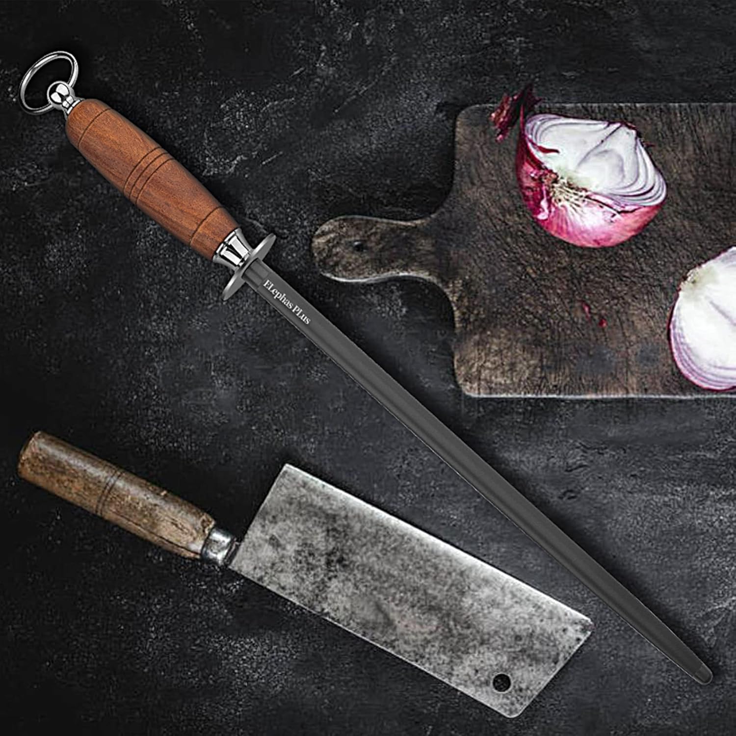 - High Quality: ELephas Plus knife sharpener from the wood handle Black Pearl series, which features a 12-inch length for efficient sharpening of various kitchen knives.