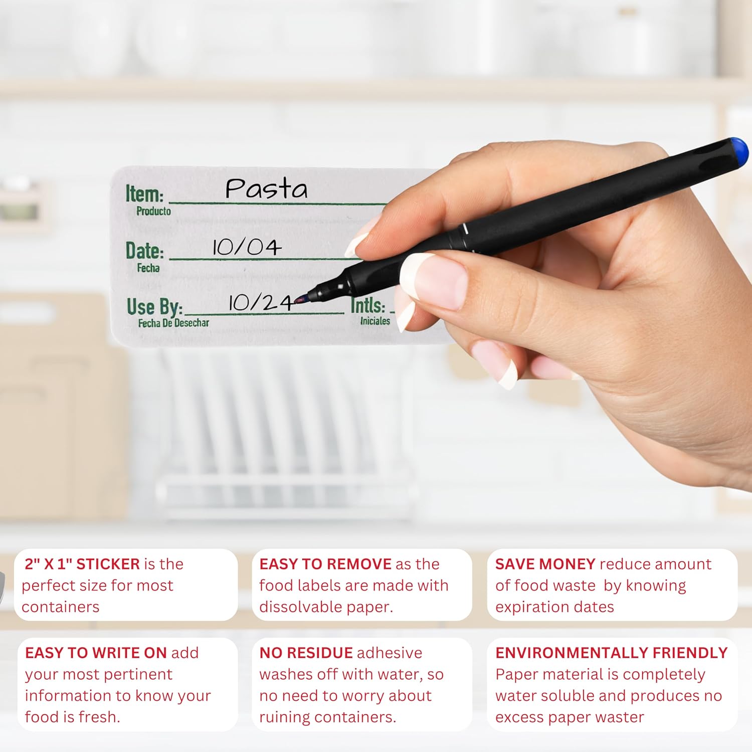 - Dissolvable food labels are made with a writeable material for specific food prep information such as prep date, time, use by, etc; Dissolvable food labels also have English and Spanish making them a great addition to restaurant supplies