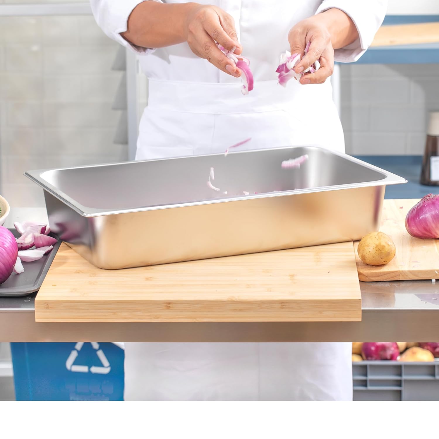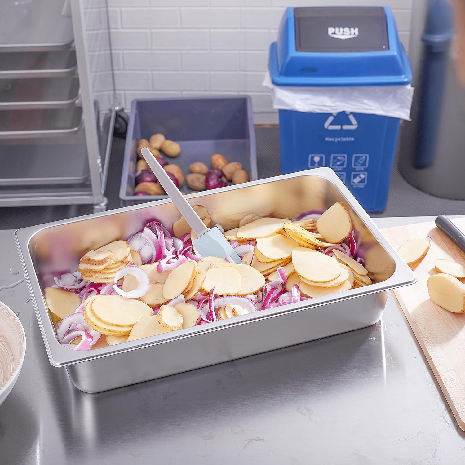 - User Friendly: The catering food pans feature reinforced edges and round corners for added strength and protection where the pan undergoes the most wear and tear, ensuring long-term use. The pans have an integrated design with no welding or gaps, and crimping round edges protect your hands from scratches while ensuring a secure and comfortable grip that is deformation-resistant.