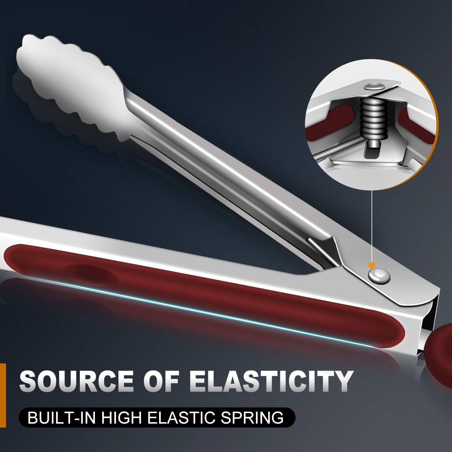 - ERGONOMIC HANDLE DESIGN AND HEAT RESISTANT: The handle is cushioned with silicon, good for thumb rest and ensures good grip and control. The metal tong head is super heat resistant. Easy to rinse, dishwasher safe.