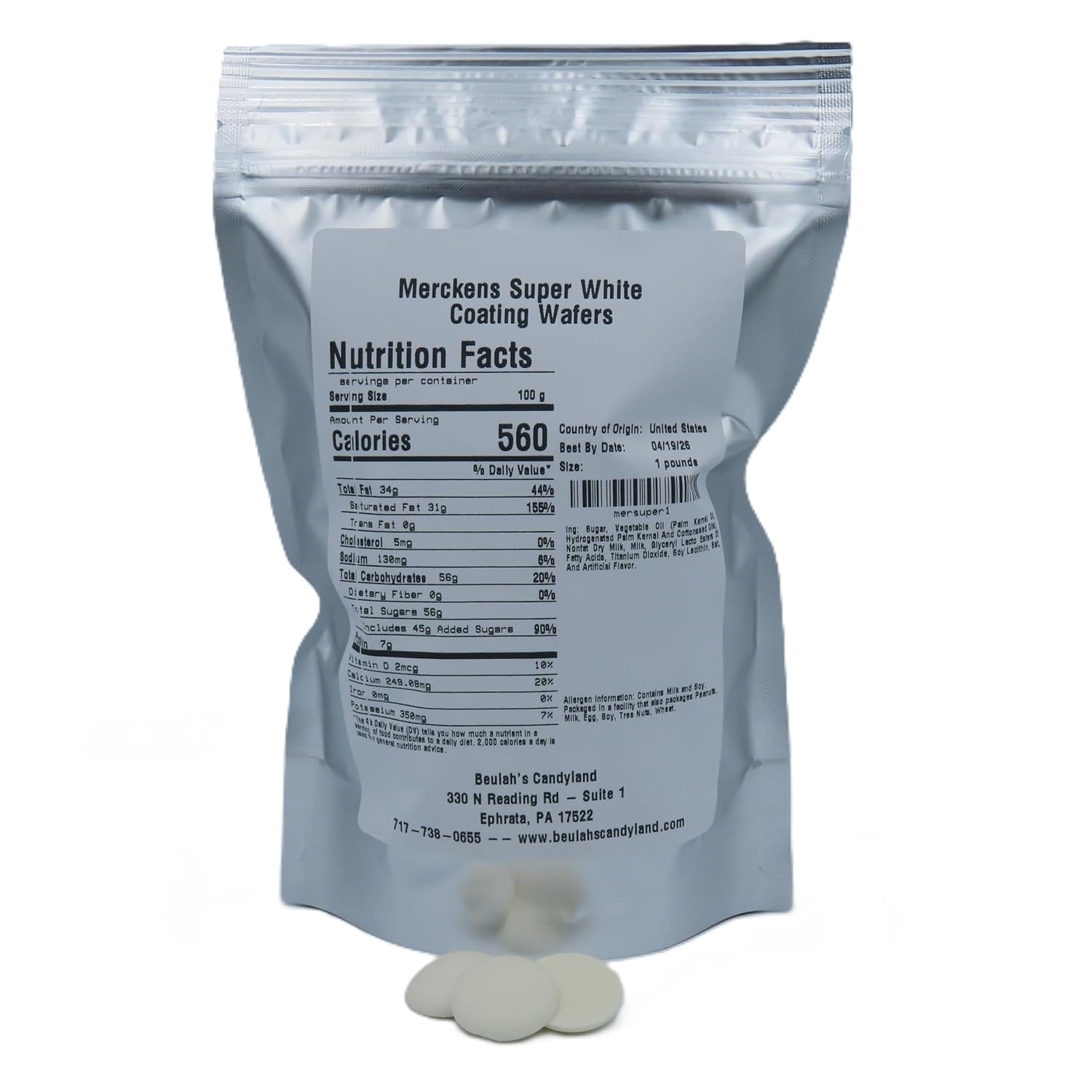 MERCKENS Coating Wafers, Melting Chocolate, Super White, 1 Pound Package