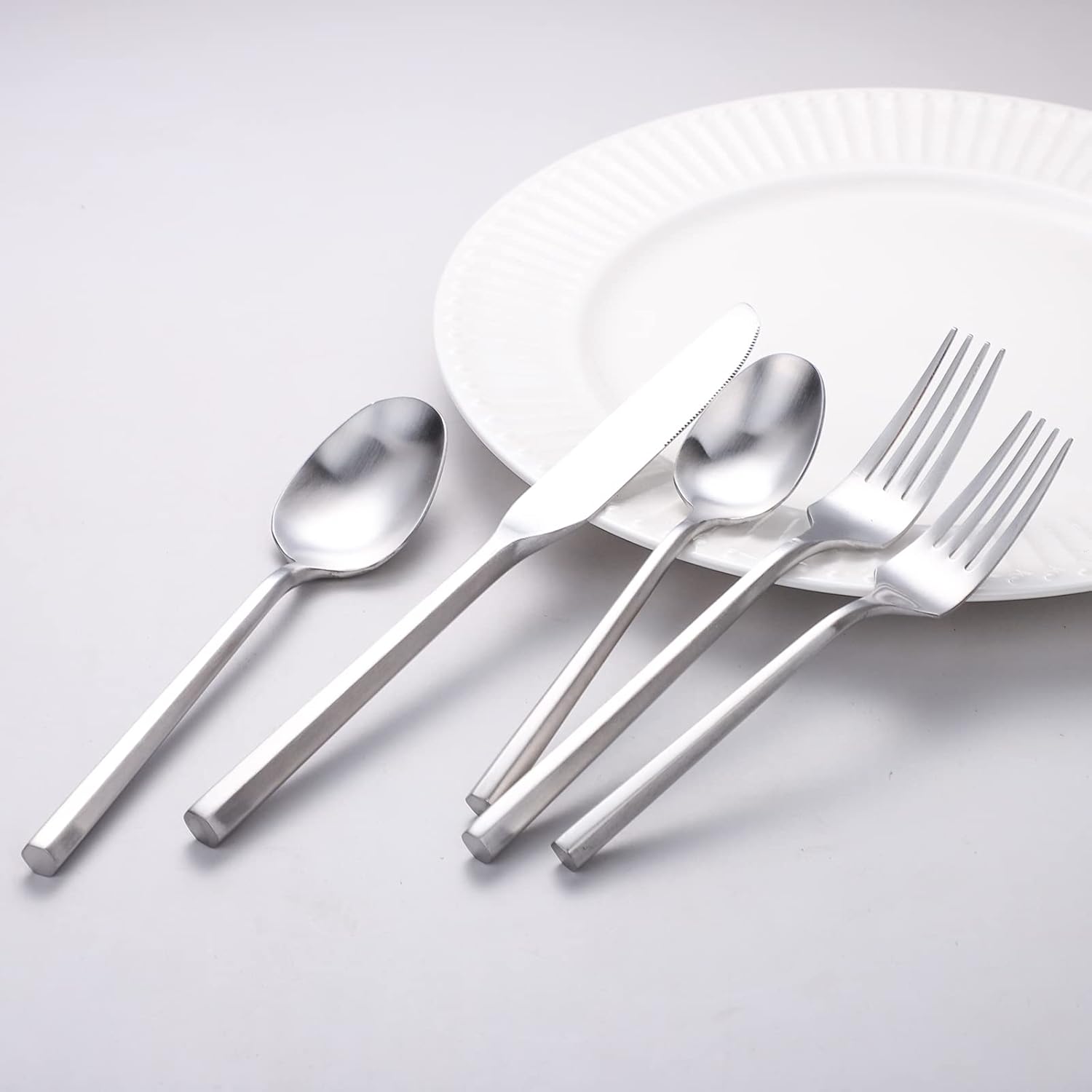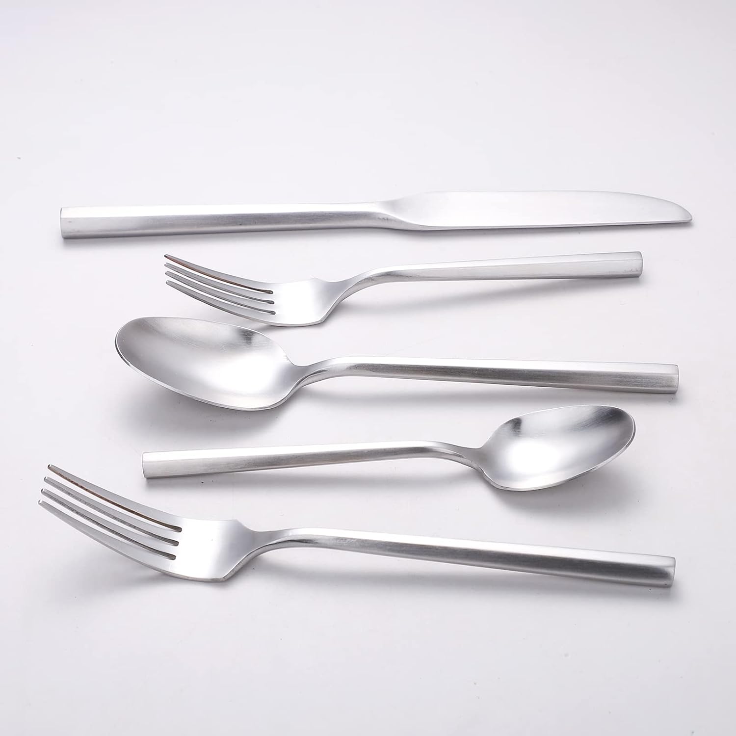 Matte Silverware Set Silver Flatware Set with Hexagon Handle 20 Pieces 18/0 Stainless Steel Cutlery Set Wedding Housewarming Gift Service for 4 (Matt silver)