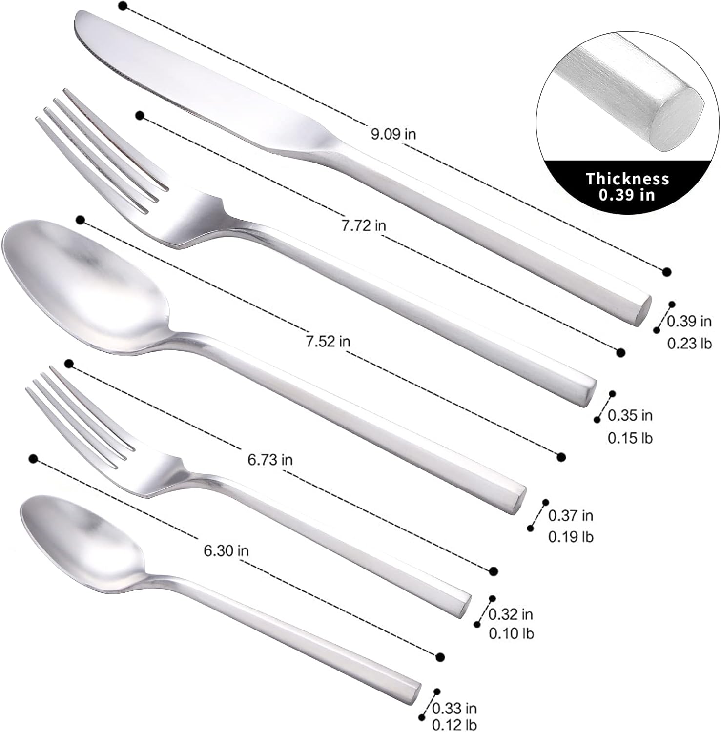 - Included Components : 4 dinner forks, 4 dinner spoons, 4 dinner knives, 4 salad forks, 4 tea spoons