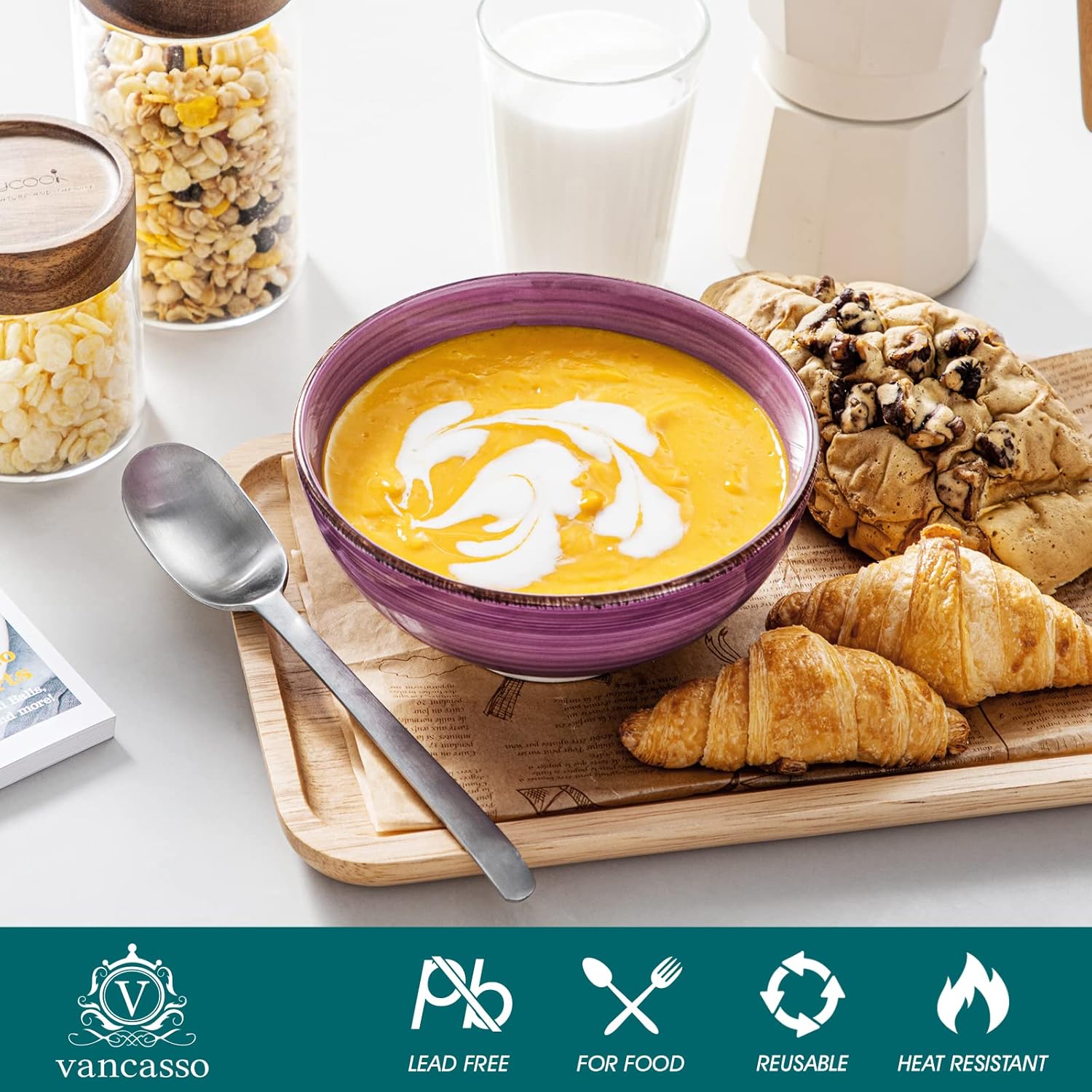 vancasso Bonita Cereal Bowls Set of 6-27 Oz Ceramic Soup Bowls, Microwave & Dishwasher Safe, 6 Inch Colorful Serving Bowls for Kitchen