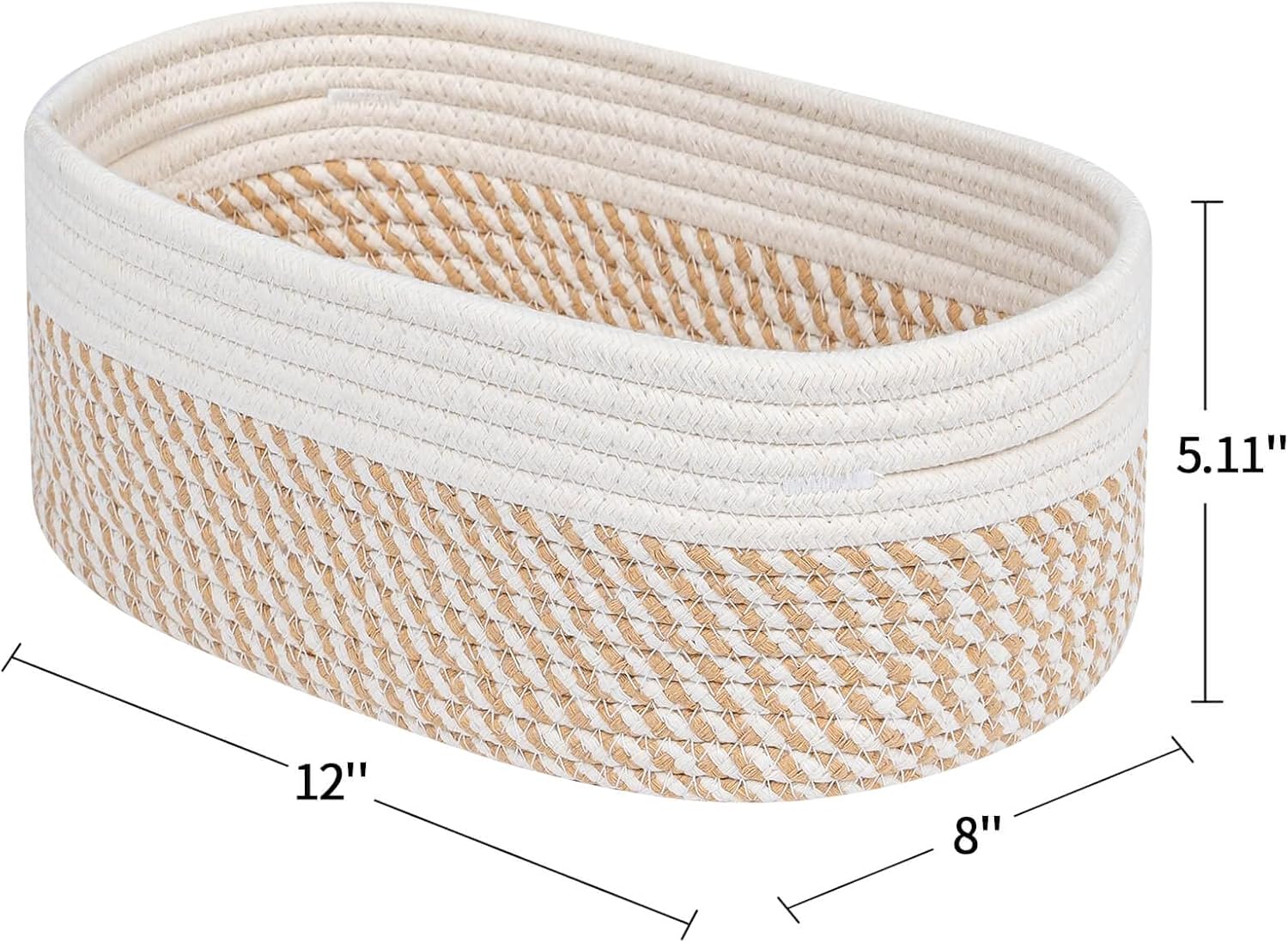 - Classy Natural Cotton Rope Storage Baskets-High quality well made. Very sturdy and a cute modern style. Durable woven rope, Long-lasting, skin-friendly, soft and attractive. You need these adorable baskets to put some supplies in, diaper, jewelry, cosmetics, makeup brushes, tea bags, storing smaller toys, toddler socks, candy