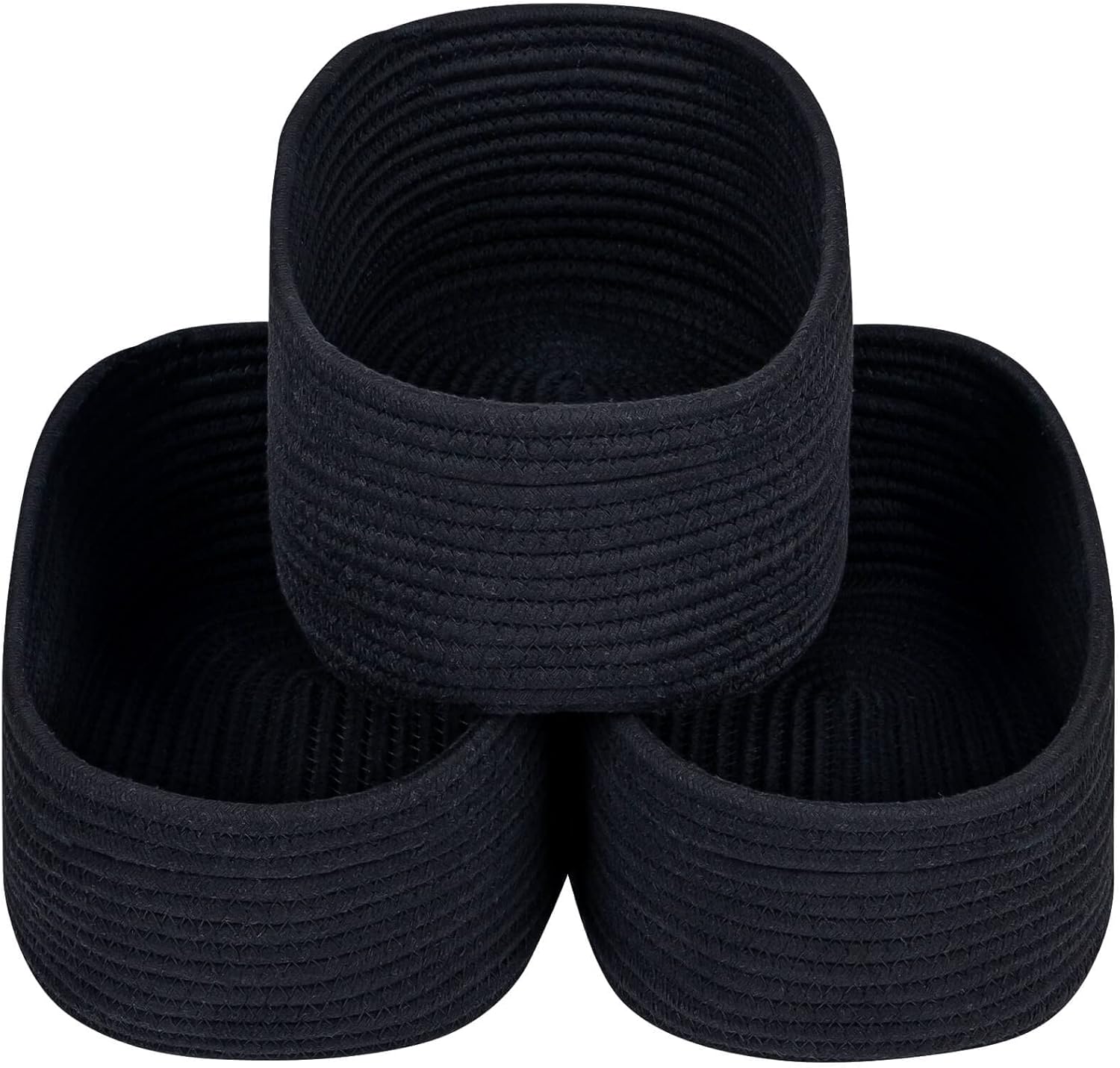 CubesLand Black Baskets Bins for Organizing,Small Woven Storage Baskets for Shelves,Cute Closet Cube Bins Set 3,Baby Nursery Toys Cube Bin,Home Decor Organization Storage