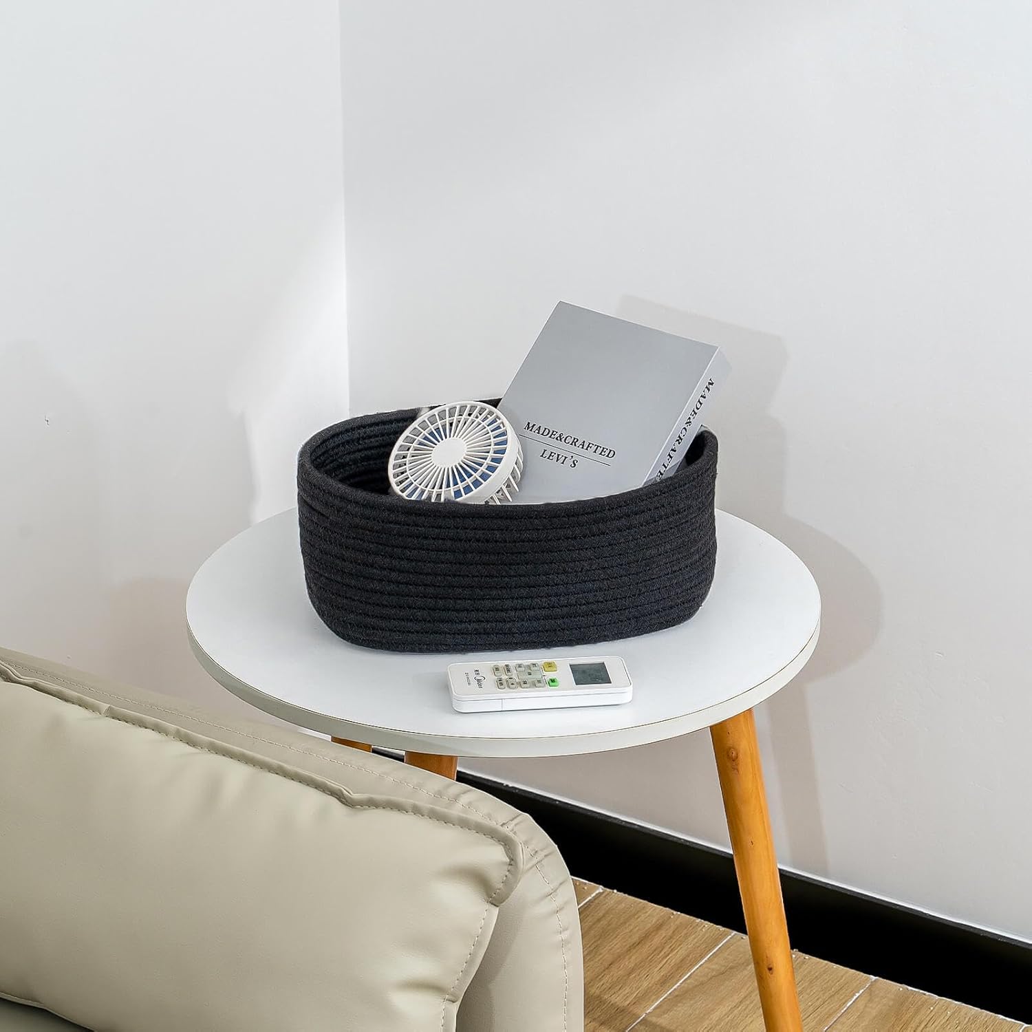 - Classy Natural Cotton Rope Storage Baskets-High quality well made. Very sturdy and a cute modern style. Durable woven rope, Long-lasting, skin-friendly, soft and attractive. You need these adorable baskets to put some supplies in, diaper, jewelry, cosmetics, makeup brushes, tea bags, storing smaller toys, toddler socks, candy