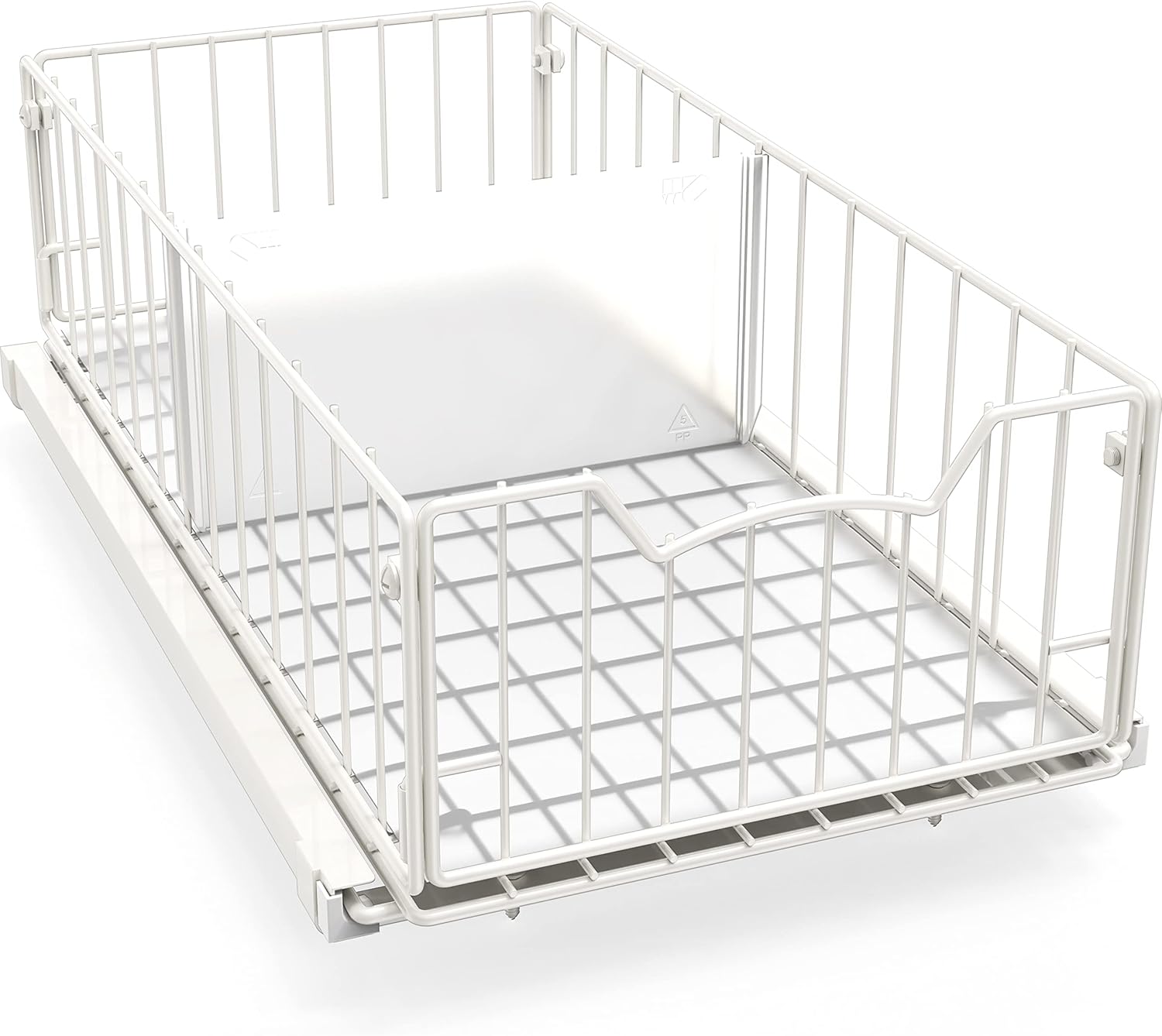 Simple Houseware Pull-Out Cabinet Sliding Basket Organizer, 17.2" D x 9.7" W x 5" H – White, Ideal for Kitchen and Bathroom Cabinet Storage, Under Sink or Pantry Organization