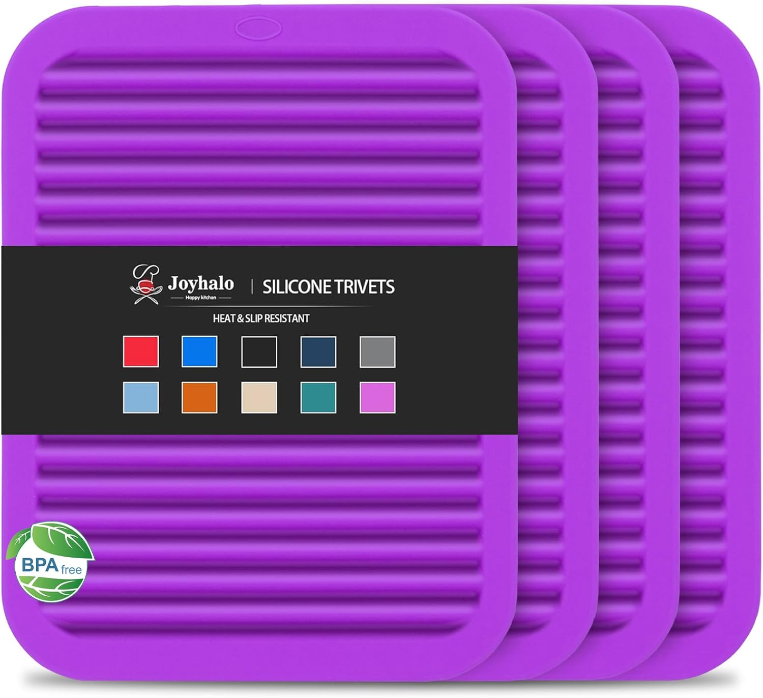 Joyhalo 4 Pack Silicone Trivets for Hot Pots and Pans,480℉ Heat Resistant Trivets for Hot Dishes,Hot Pads for Countertop,Kitchen Potholders,Purple