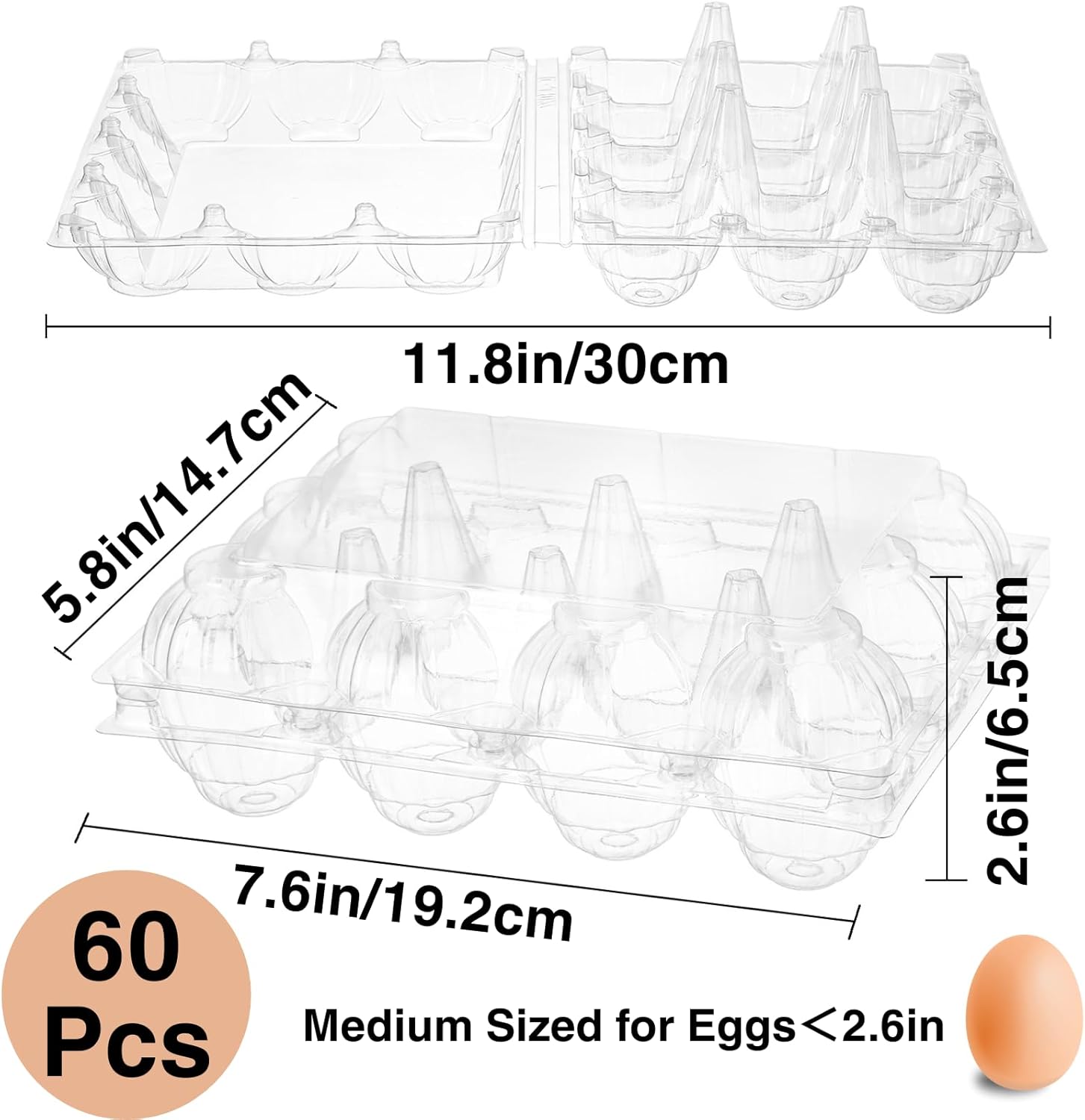 Youeon 60 Pcs Plastic Egg Cartons 12 Count, Clear Egg Cartons for Chicken Eggs 3x4 Grid, Reusable Eggs Carton Bulk Perfect for Family, Farm, Markets, Display, Camping -Medium