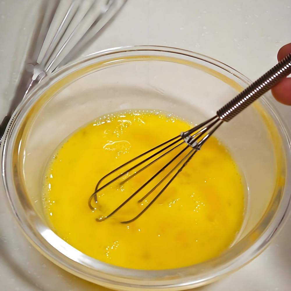- [Reinforced Metal Whisk]:10 inches of food-grade stainless steel whisk adopted bold 6 wire processing, which solves the pain of bending or the line breaking of some common whisks for cooking on the market during some heavy mixing and stirring.The wires do not get tangled in each other and the spacing helps wire whisk liquids better.