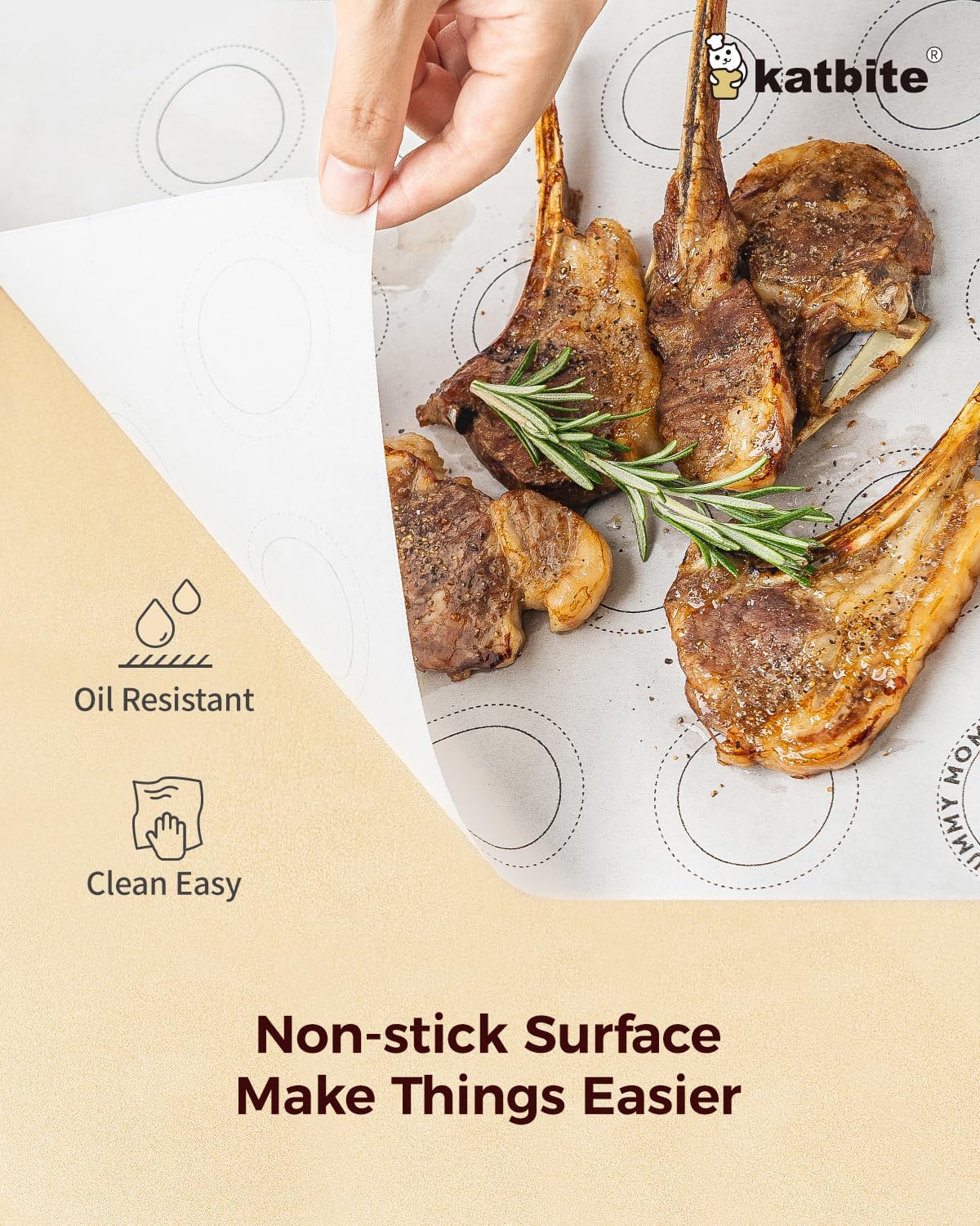 Katbite 100 Macaron Parchment Sheets Template Baking, Cookie Parchment, Printed Circle Baking Stencil for Macaron Cookie, 12x16 In, Non-Stick & Heavy Duty, Pre-cut Paper for Chicken Pizza French Fry