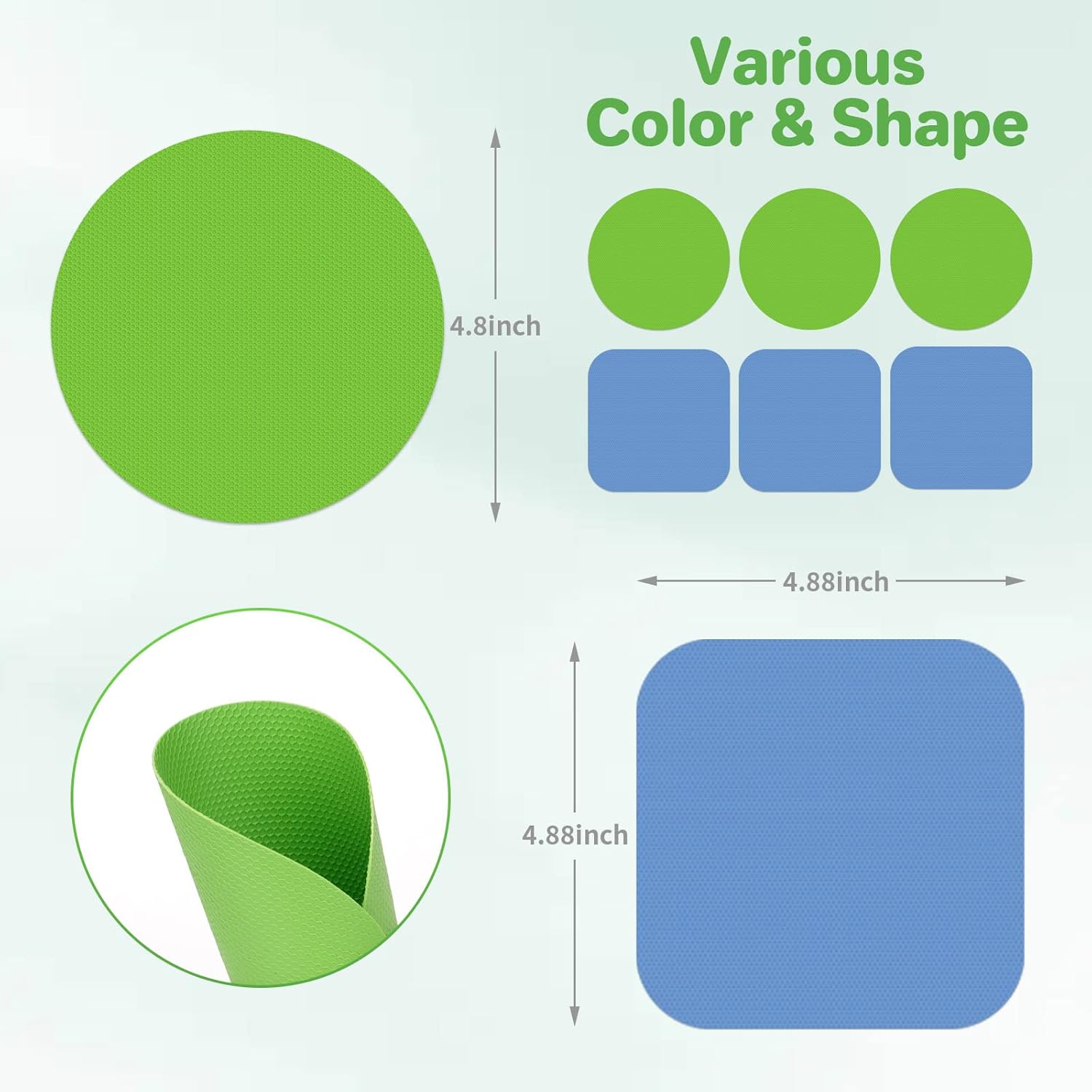 - Package Includes: You will receive 6pcs jar opener gripper pads in 2 shapes(round & square) & 2 colors(green & light blue). These rubber gripper pads are soft & thin, easy to open the lids without extra jar opener.