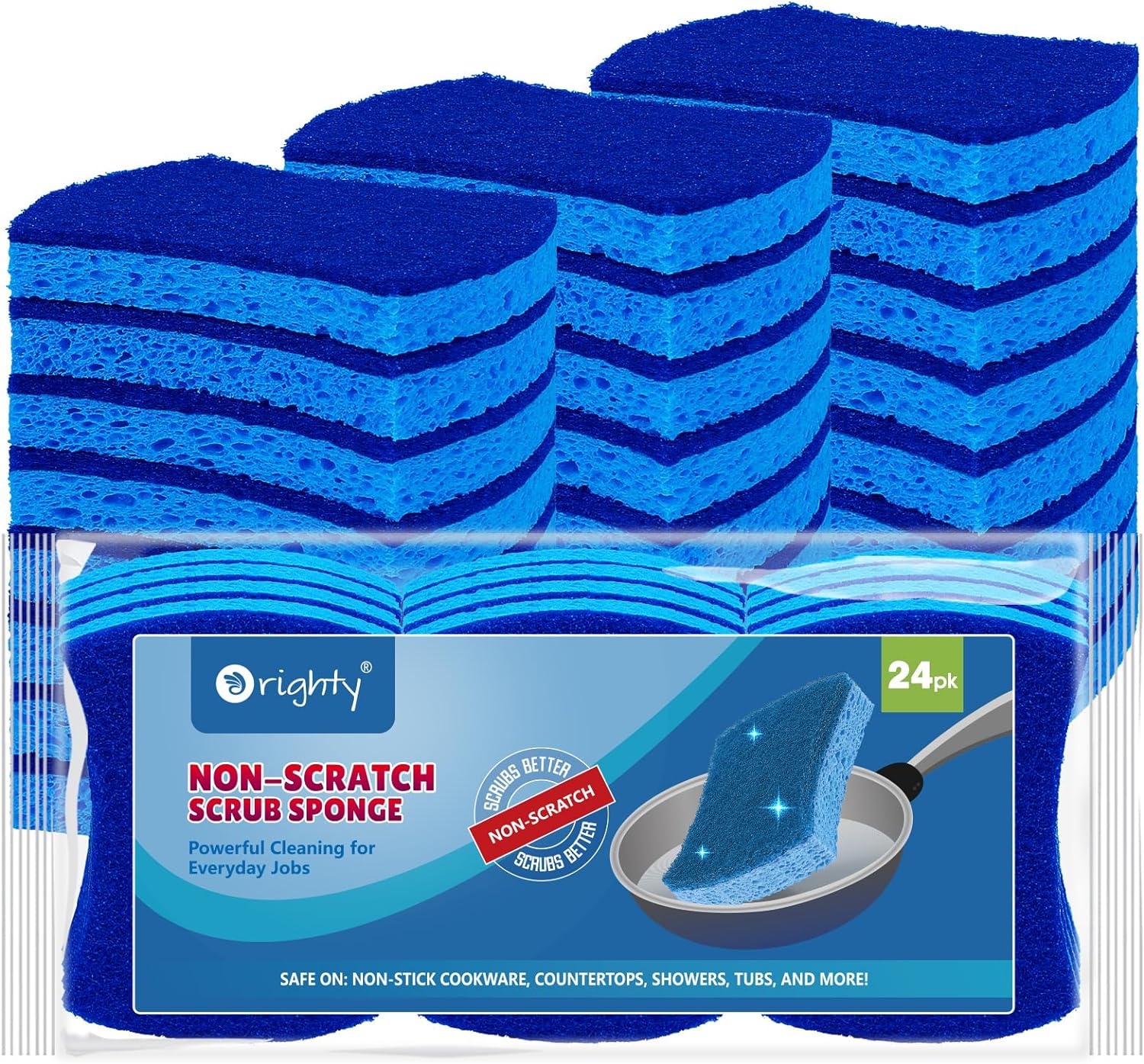 Orighty Non-Scratch Cellulose Scrub Sponges 24 Pack, Kitchen Sponges for Kitchen, Bathroom, and Household, Dual Side Sponge for Dishes, Non-Scratch Sponge Safe on Non-Stick Cookware, Car and More