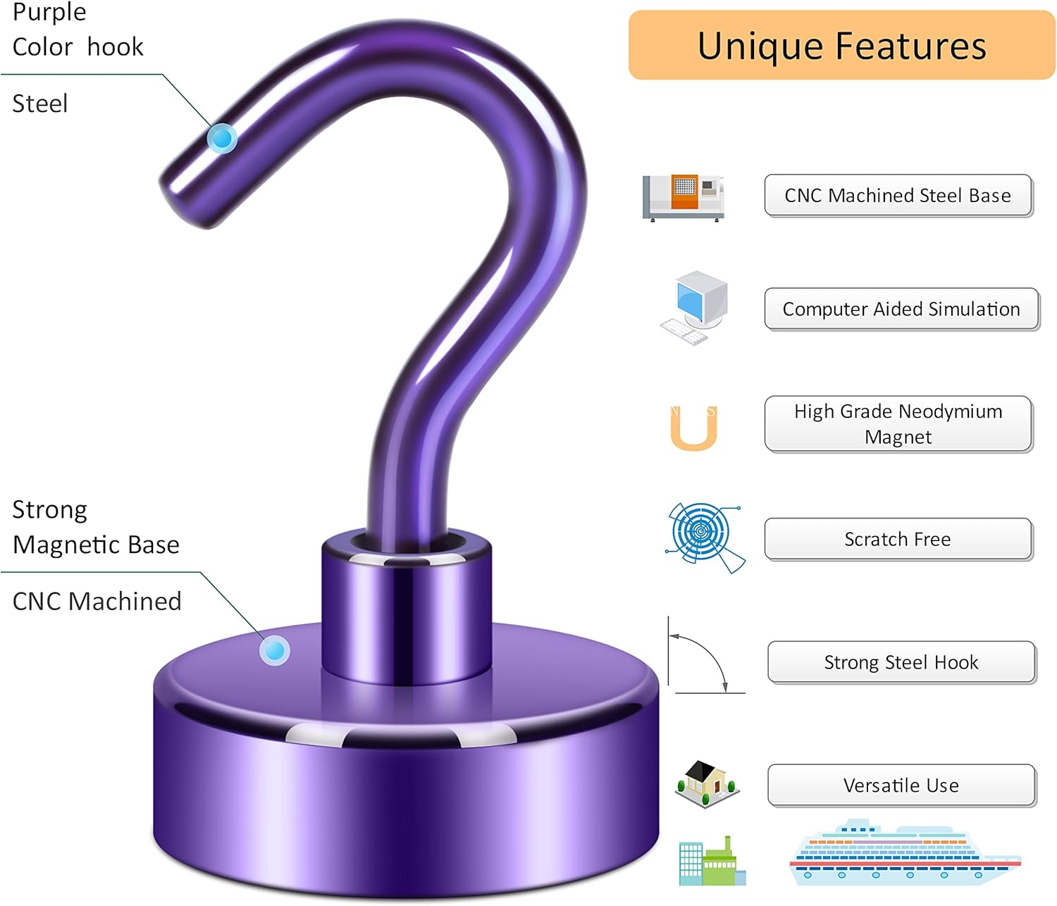 - ✔ VERSATILE USE- Neosmuk’s strong neodymium magnetic hooks were endowed with a strong capability for holding various items wherever there is iron or steel. This magnet hook is a perfect magnetic key holder. You can also hang your tools next to the toolbox with this magnetic hook. Our magnetic hooks are great for grill, pot, cup, utensils, and oven.