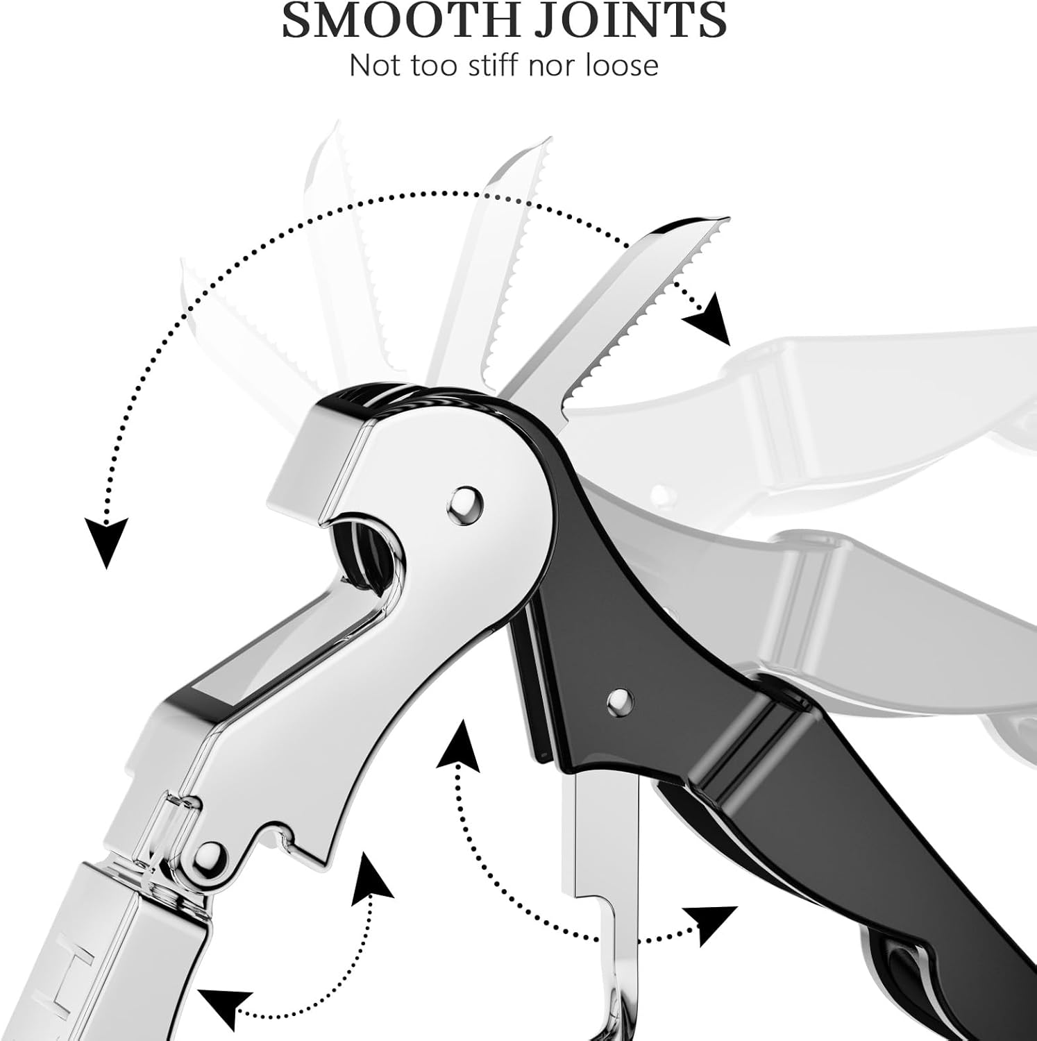 - Multitool Wine Opener: A classical two-stage opening system with a hinge, making it effortless to pull out the cork. A built-in bottle opener for conveniently opening bottles of beer. A foldable foil cutter that neatly removes the foil from the bottle neck