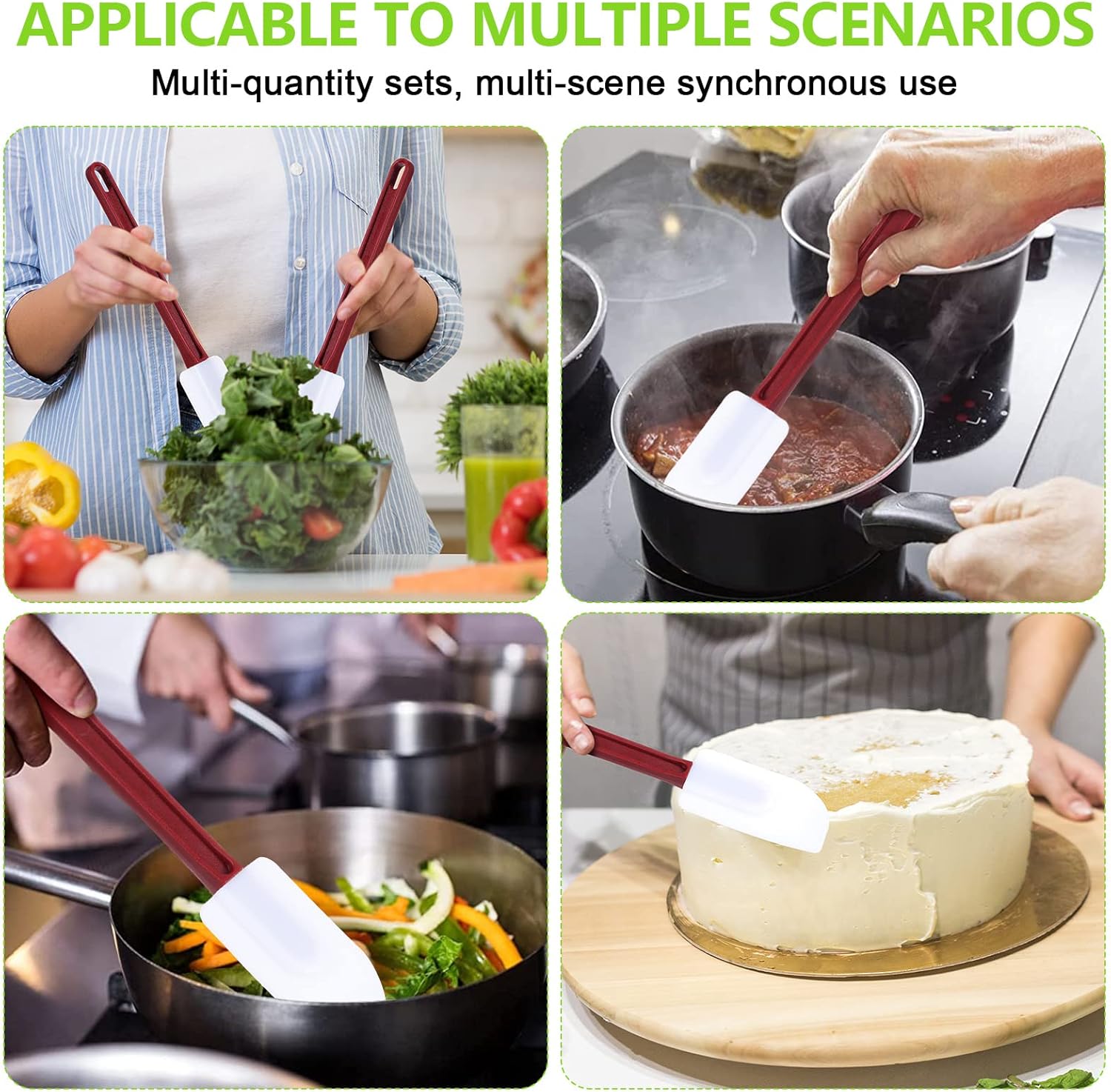 - Heavy Duty and Long Handle: our long handle spatulas are flexible for most heavy duty task, making it easy to mix even the thickest dough and mixtures; The long handle is thick and comfortable to hold, saving you energy in the kitchen