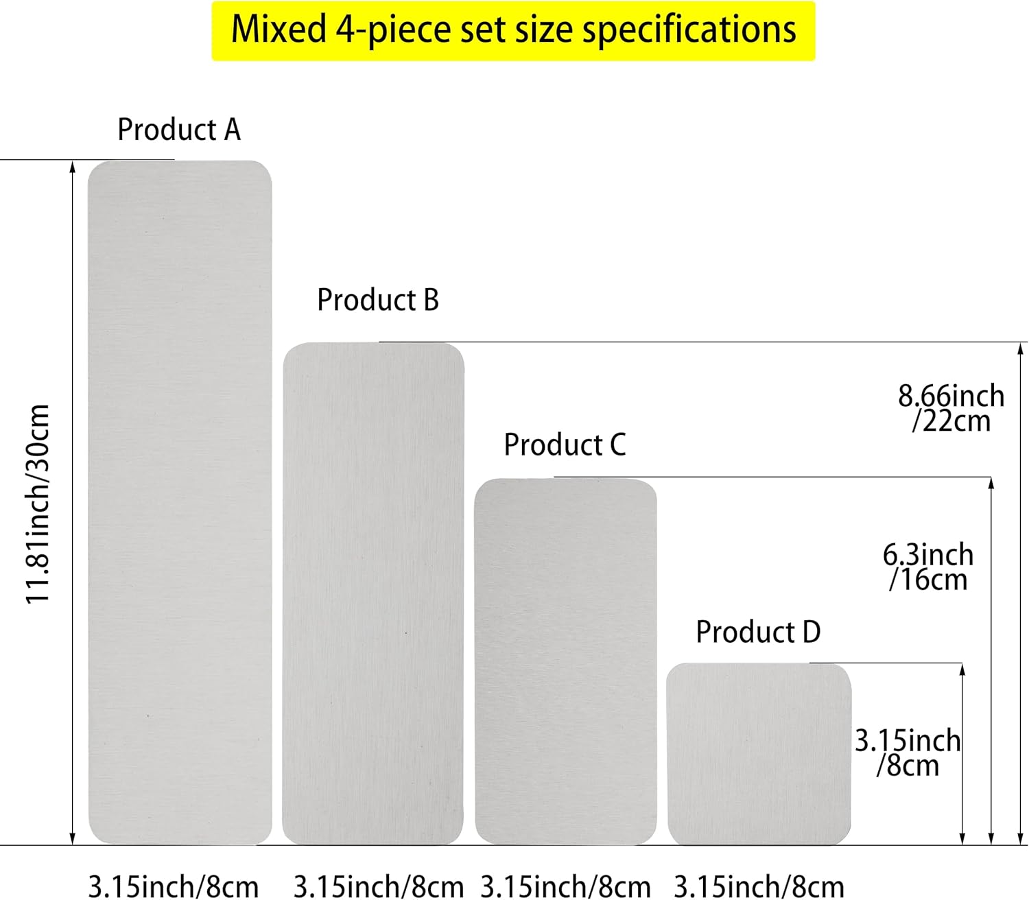 - 5、Each package included: Product A; Product B;Product C;Product D;Silicone non-slip mat * 16;Sandpaper*1; Manual*1; Product A Size: 3.15 inch * 3.15 inch * 0.35 inch (8cm * 8 cm * 0.9 cm) Product B Size: 6.3 inch * 3.15 inch * 0.35 inch (16cm * 8 cm * 0.9 cm) Product C Size: 8.66 inch * 3.15 inch * 0.35 inch (22cm * 8 cm * 0.9 cm) Product D Size: 11.81 inch * 3.15 inch * 0.35 inch (30cm * 8 cm * 0.9 cm) Tray Color: White