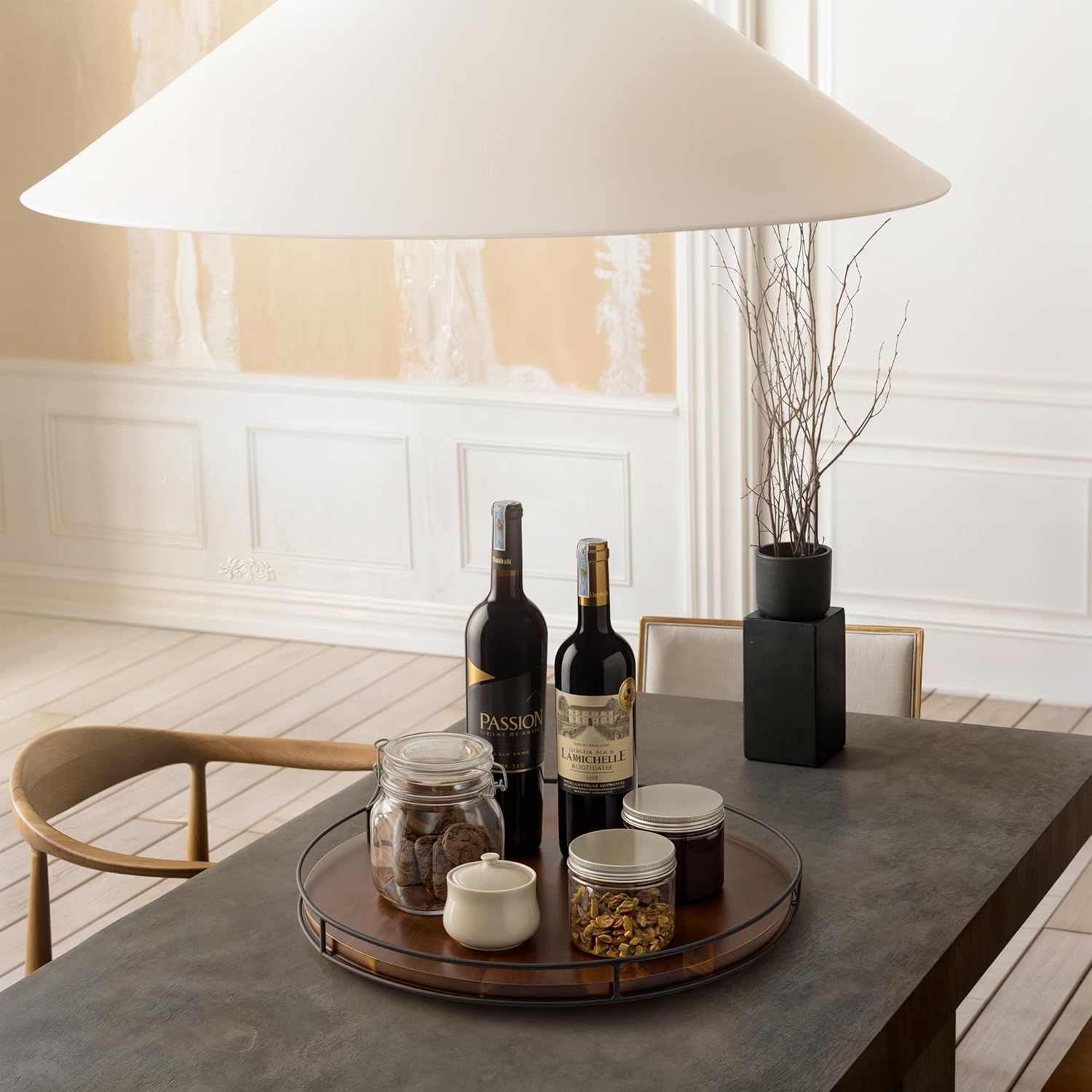 18" Acacia Wood Lazy Susan Turntable with Metal Frame - Large Brown Lazy Susans Organizer Countertop Storage - Wooden Serving Tray for Charcuterie Cheese Board - Kitchen Counter Rotating