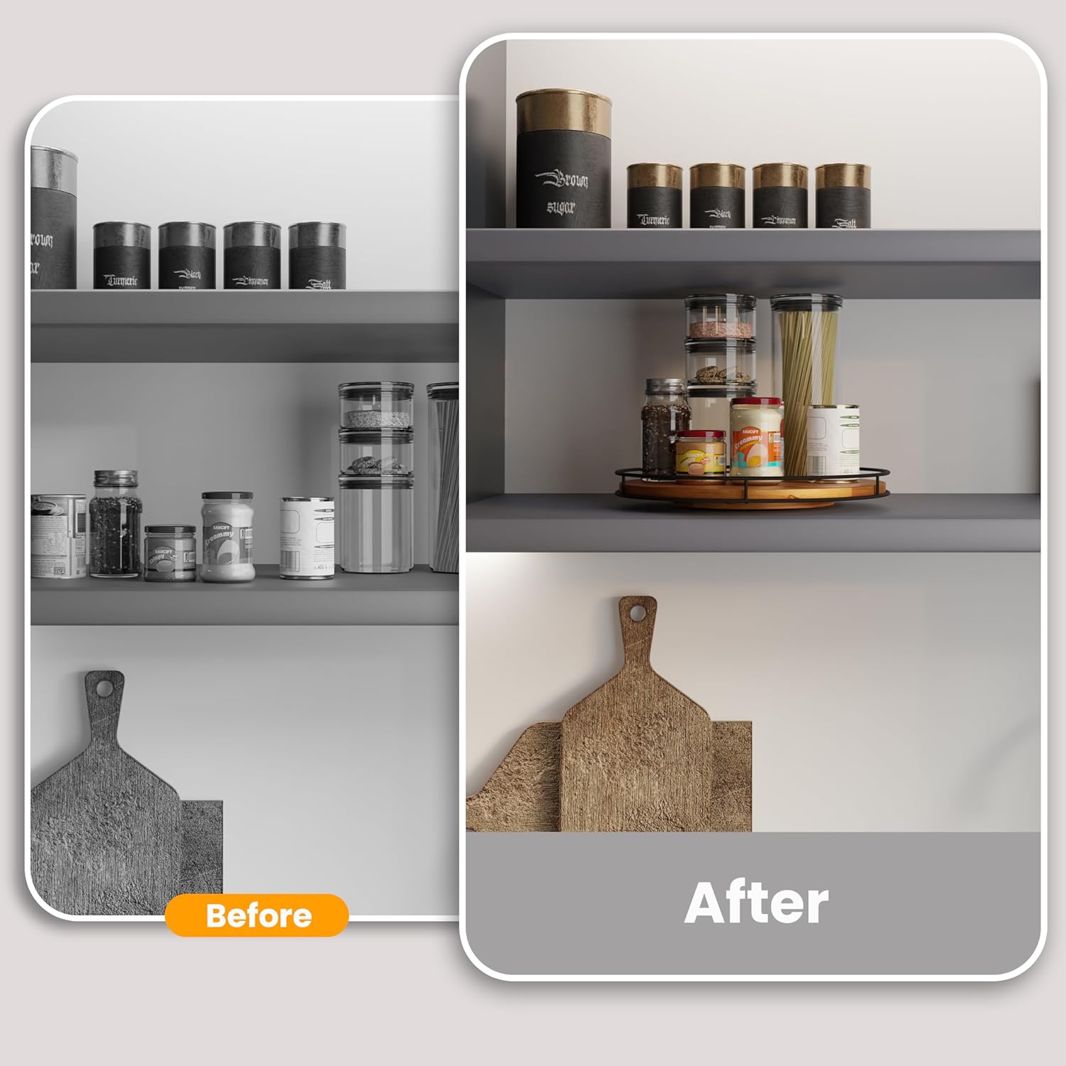 - Effortless 360-Degree Rotation: Effortlessly rotate the lazy Susan a full 360 degrees, granting you quick and convenient access to all items placed on it. This smooth rotation mechanism ensures that everything is within easy reach, eliminating the need for awkward stretching or shuffling.