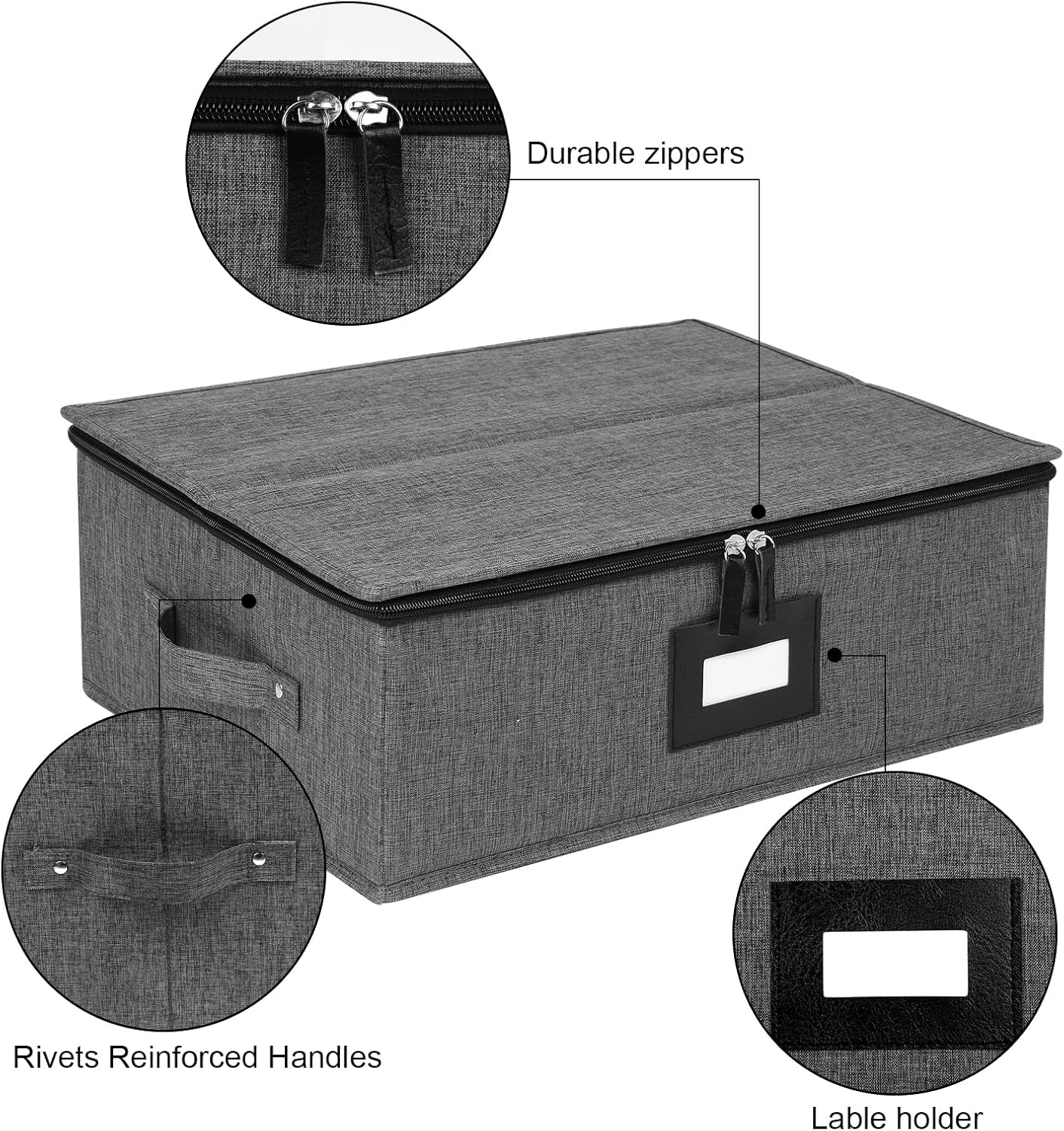 - DURABLE MATERIAL - China storage containers is made from premium polyester and sturdy thick cardboard, inside cardboard separators prevent items from cracks & scratches, while the stiff exterior prevents squashing during storage or transport