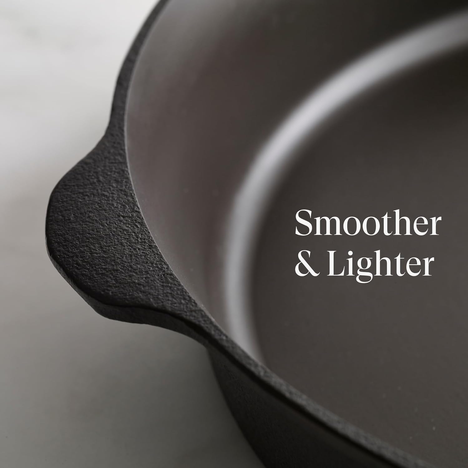 - SMOOTHER & LIGHTER (10¼" Diameter, 2" Deep): Field Company cast iron is machine polished using modern methods to replicate the lighter, smoother cast iron pieces produced during the golden age of vintage American cast iron. At just 4.5 pounds, we found the perfect weight to easily maneuver around the stovetop, oven, and grill, while retaining the heft needed for high-heat searing.