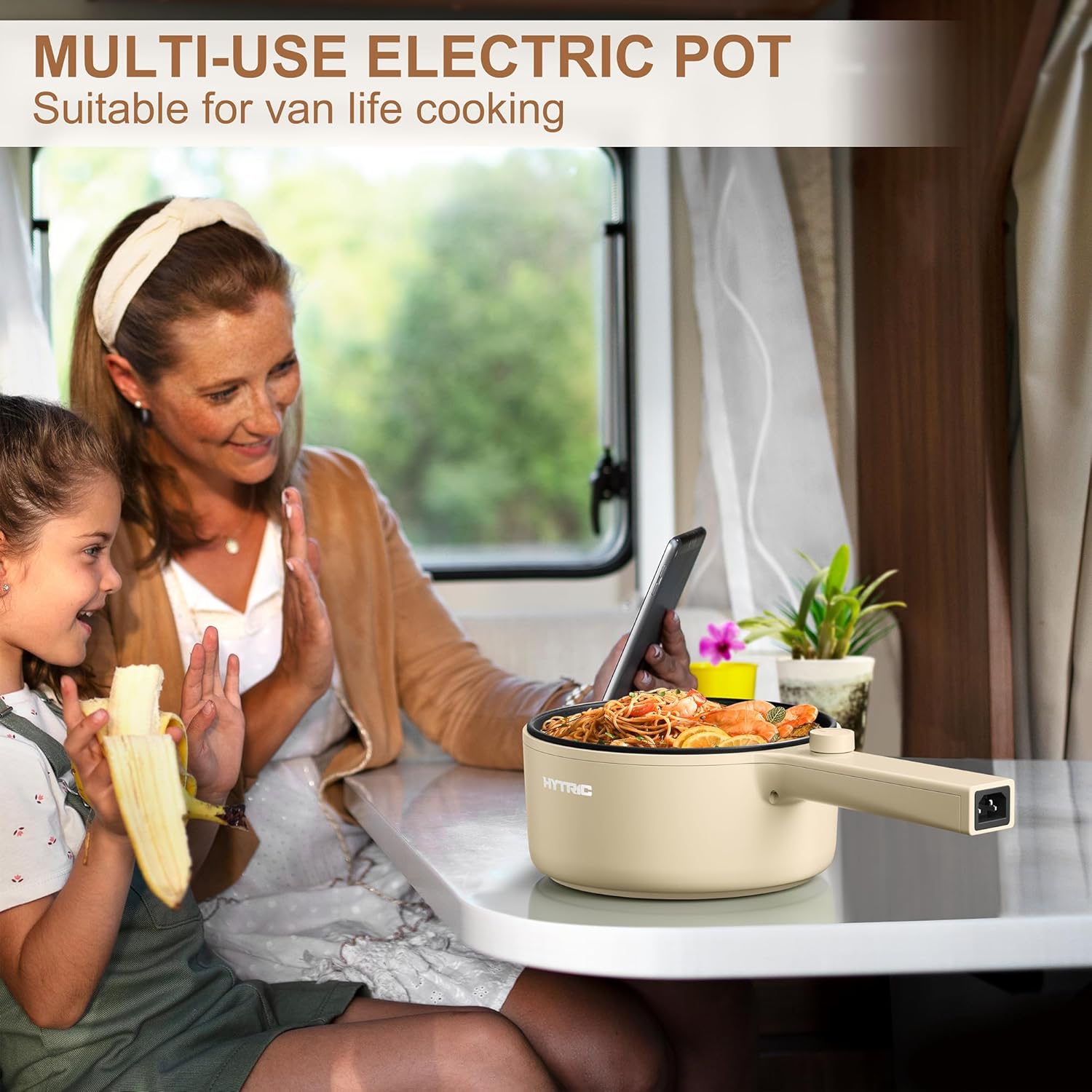 - 【Portable & Long Handle】With a rational design of the long handle (17cm/6.7in), the Hytric electric cooker is highly portable and lightweight, making it easy to carry for those who are always on the go, perfect for camping, picnics, or traveling.