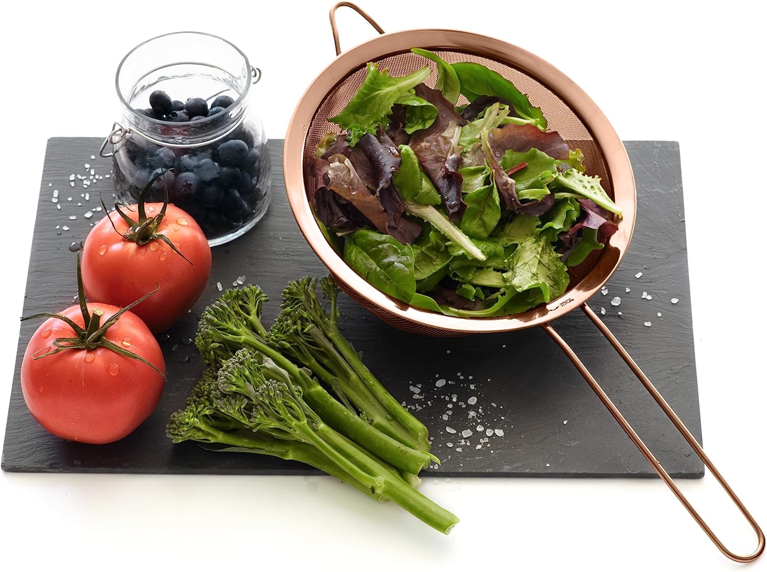 - TITANIUM ECO-FRIENDLY AND STYLISH COPPER COLOR FINISH - our kitchen strainers feature a titanium Physical Vapour Deposition eco-friendly coating. The PVD applied to all our food strainers is the highest quality coating and the entire process is environmentally harmless