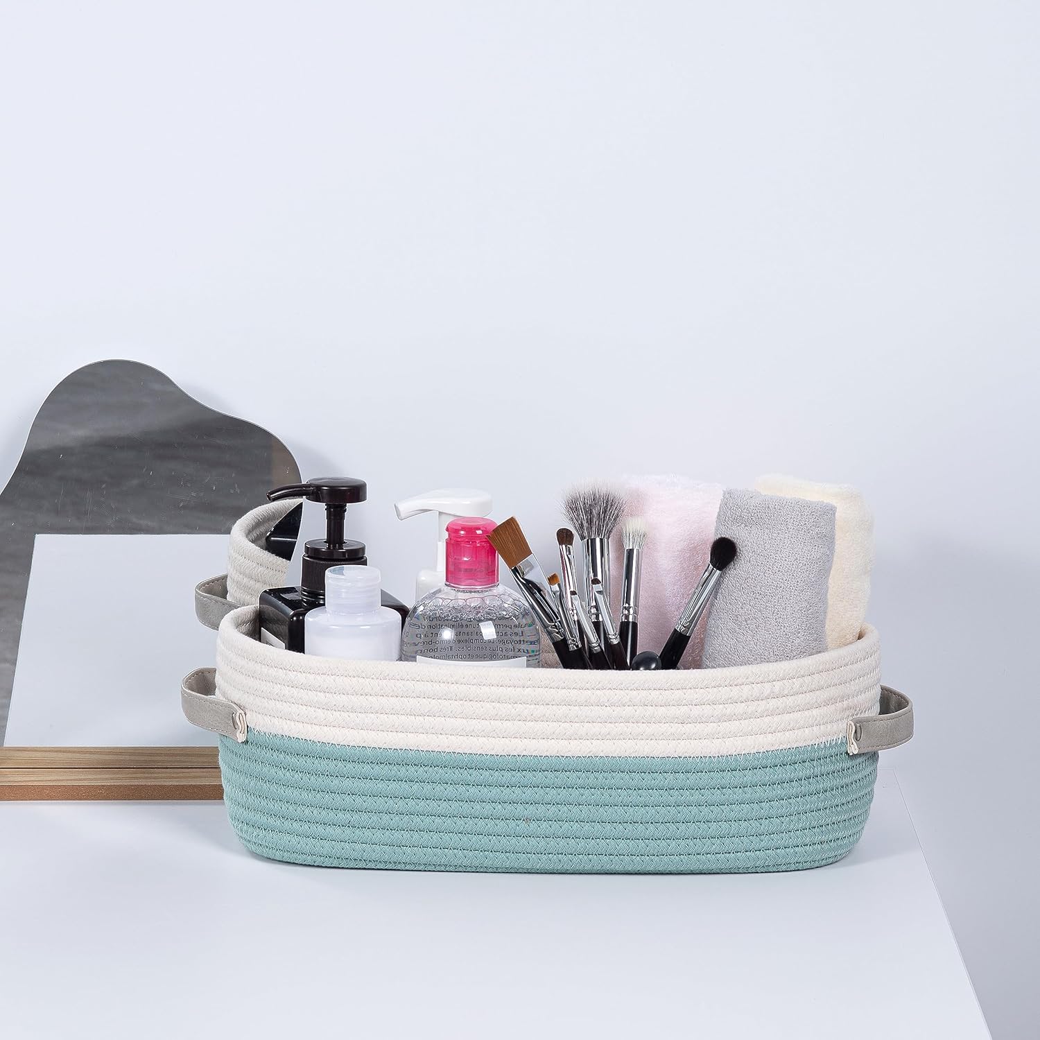 - 🍀Multi-purpose: Decor storage basket fits nicely on the counter or toilet tank,and is perfect to hold vase,planter,air freshener,soap dispenser.This storage basket can be used not only in the bathroom,but also as a organizer in living room,bedroom or nursery