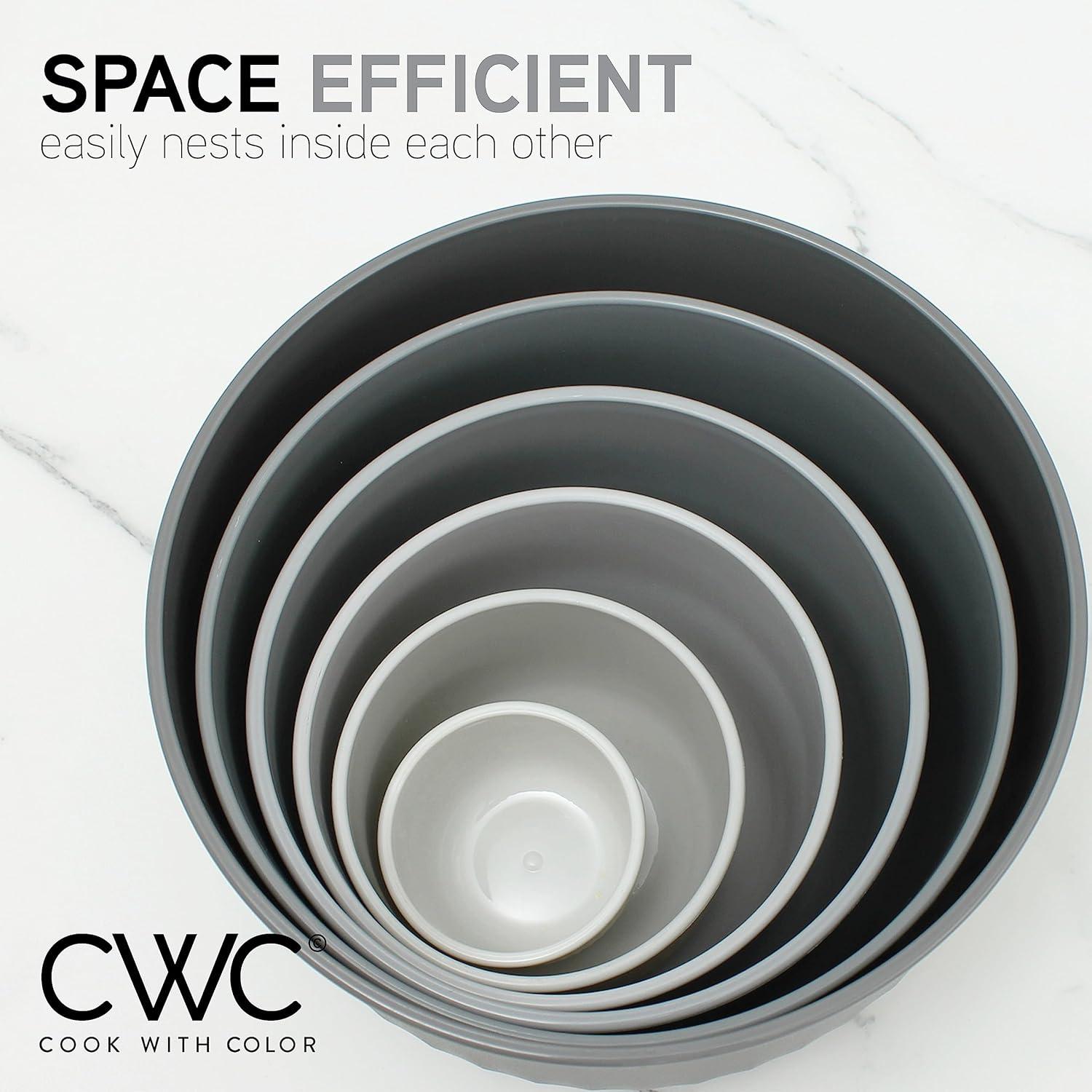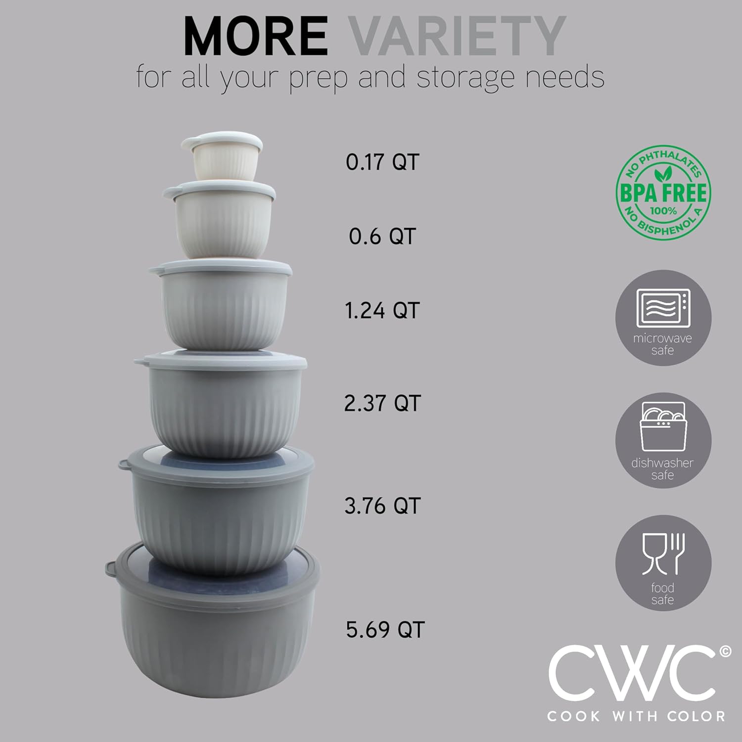 COOK WITH COLOR Prep Bowls with Lids- Wide and Deep Nesting Plastic Small Mixing Bowl Set with Lids, 12 Piece Set - Deep Bowls, Gray