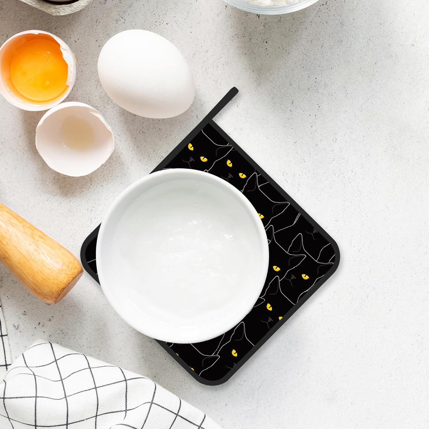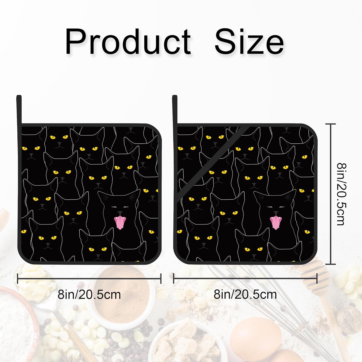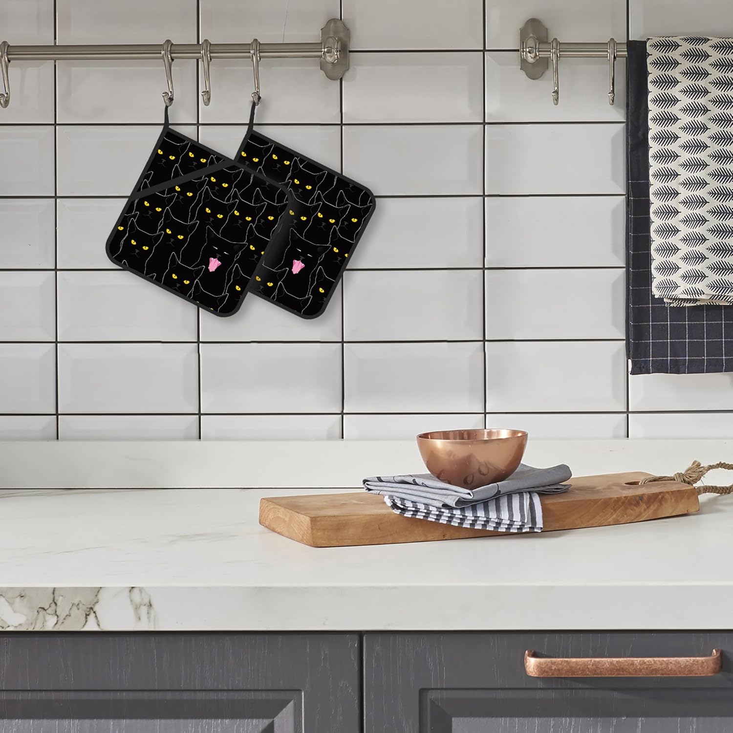 Pot Holder Set of 2,Black Cat Cute Kitchen Heat Resistant Potholder for BBQ Cooking Baking,Food Hot Pat for Women Men Kitchen Wear