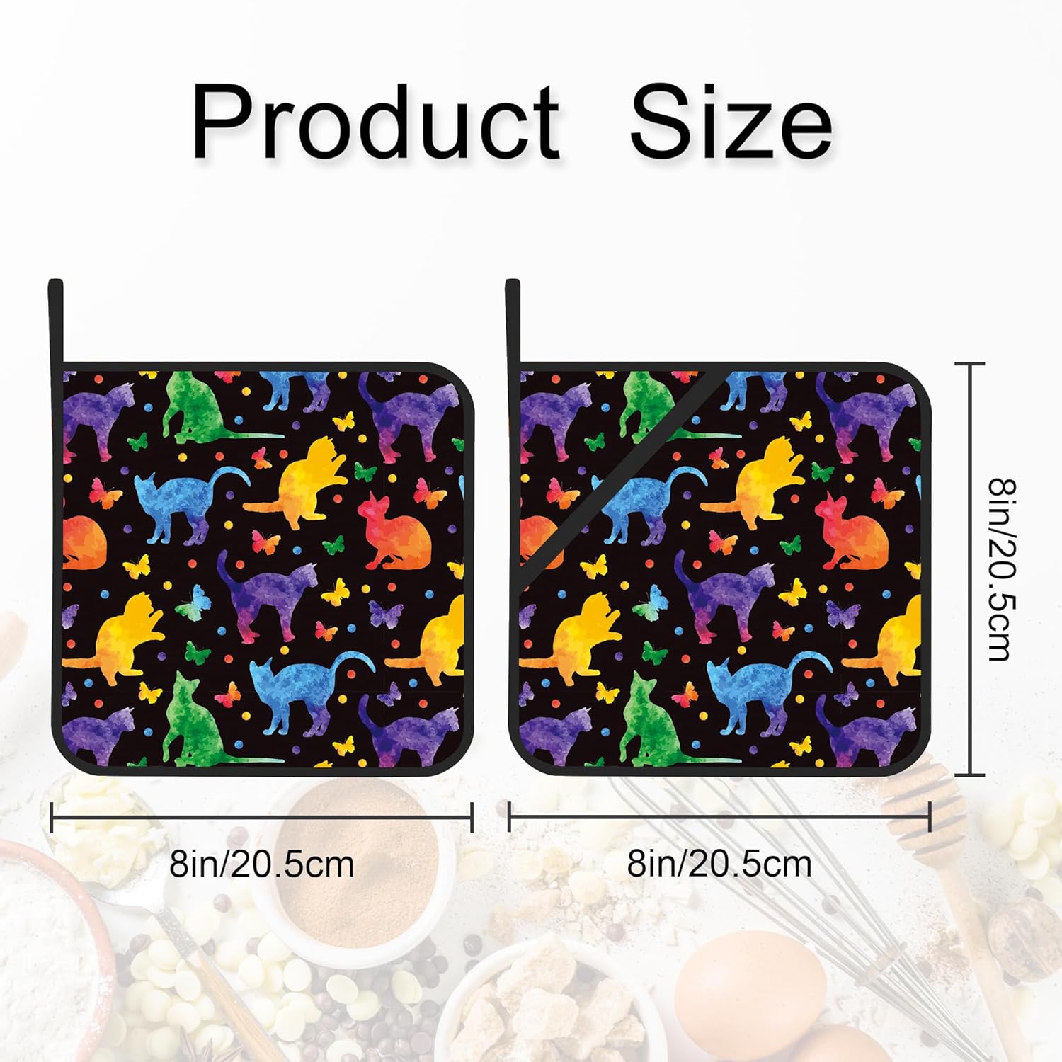 Pot Holder Set of 2,Cat Silhouette Kitchen Heat Resistant Potholder for BBQ Cooking Baking,Food Hot Pat for Women Men Kitchen Wear