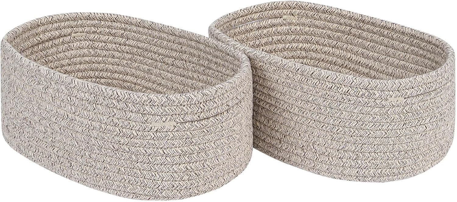 - Classy Natural Cotton Rope Storage Baskets-High quality well made. Very sturdy and a cute modern style. Durable woven rope, Long-lasting, skin-friendly, soft and attractive. You need these adorable baskets to put some supplies in, diaper, jewelry, cosmetics, makeup brushes, tea bags, storing smaller toys, toddler socks, candy