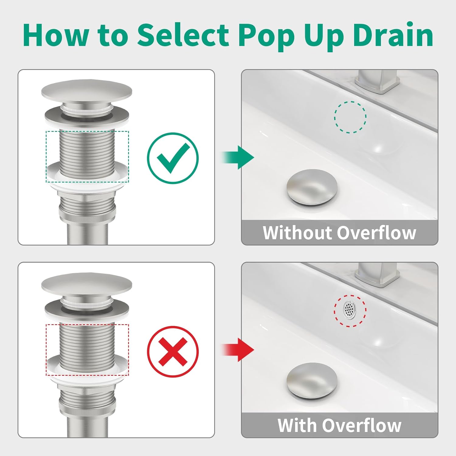 - 【Easy to Operate & Install】: This stainless steel sink drain stopper adapts a large button pop-up design so that you can operate it easily. Simply press the top of the drain to open for quick drainage and press again to close to stored water. Furthermore, you can install it by yourself easily without hiring a plumber. Please check the installation instructions carefully before installation and ensure that the gasket is in the correct position and direction to avoid leakage.