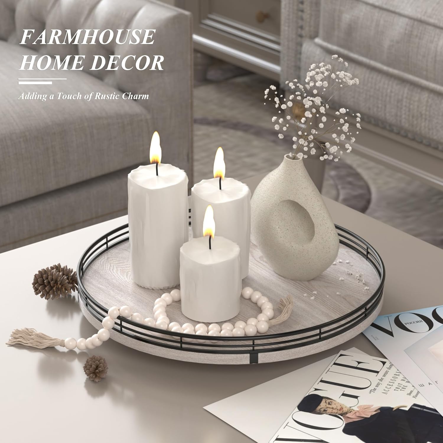13" Oak Bathroom Vanity Tray Turntable for Perfume Candle, Round Wooden Decorative Tray for Kitchen Sink Countertop Organizer, Bathroom Counter Organizer for Skincare Makeup, Rustic White