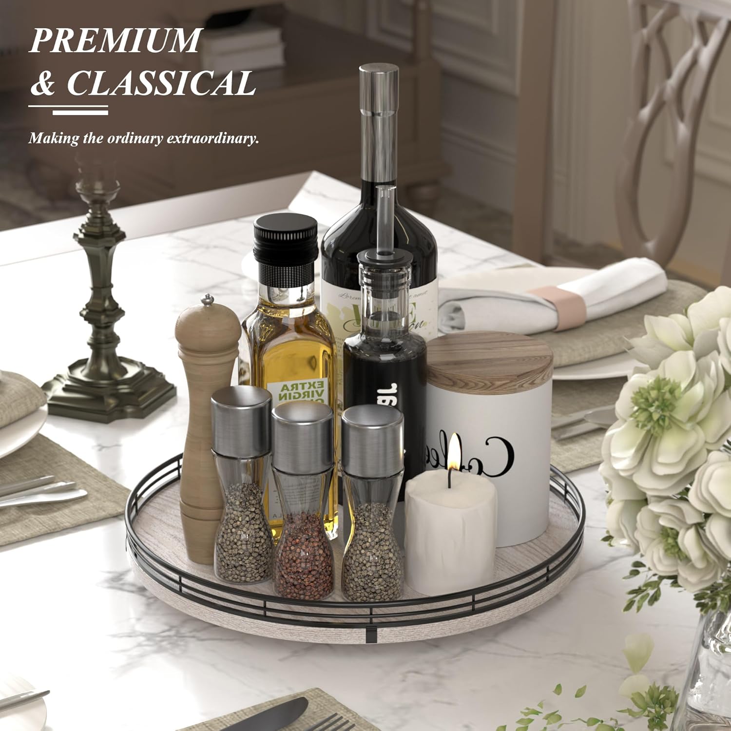 - πππΒ°ππππππππ :The base is made of solid wood, and the spinning mechanism is made of steel ball bearings, which are well-built and allow for 360Β°smooth spinning. This Lazy Susan is very attractive and very easy to use to keep your spices, condiments, and more organized and accessible.