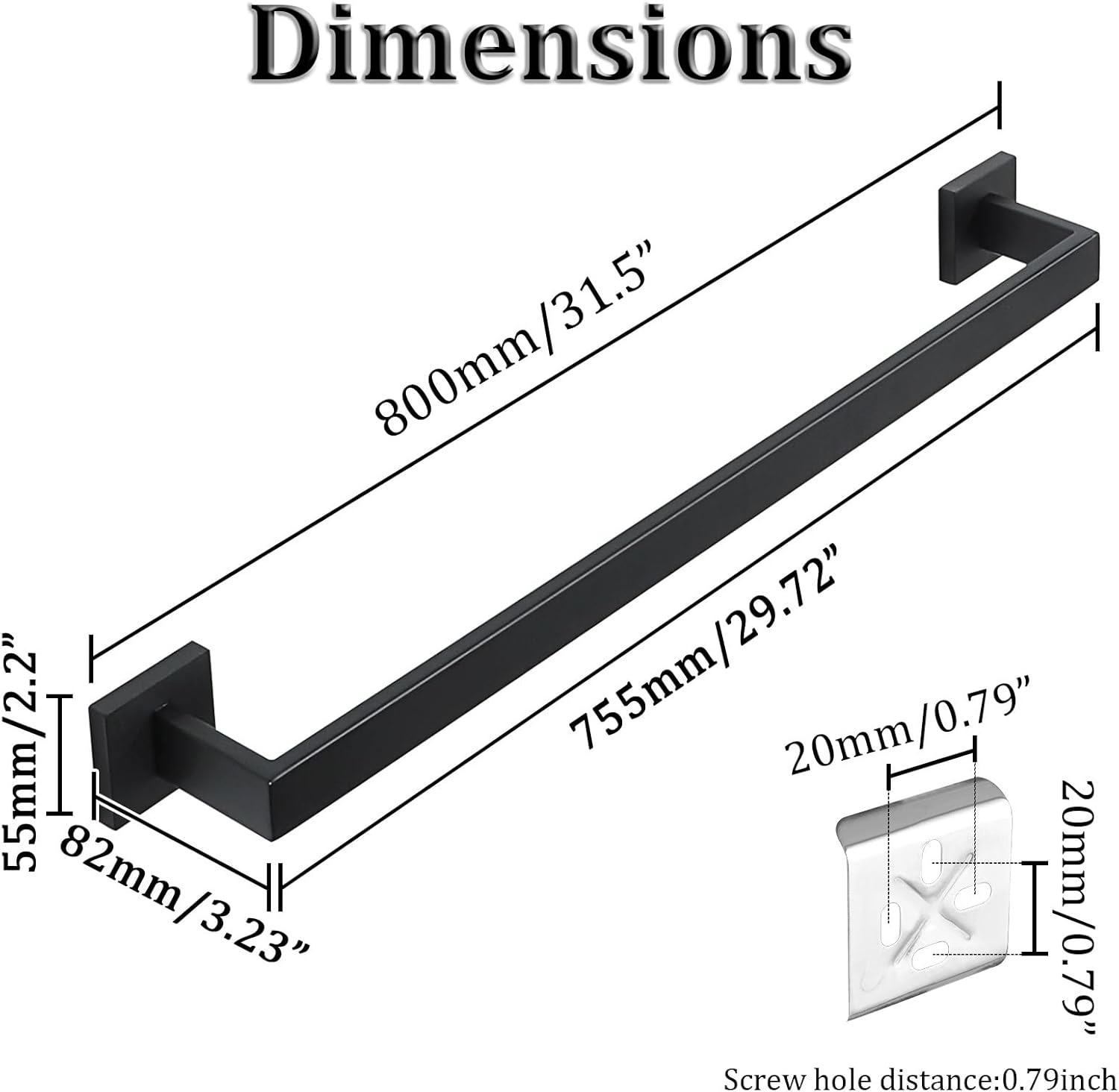 - 【Measure Before Buying】Dimensions 31.5''Lx2.2''Wx3.23''H, Useable Length 29.72 Inch towel hanger. 2.8 Inch Separation Distance from Wall - Enough space for quick drying, hanging towel quickly.No need to fold your towel any more.If you have any questions about the black towel bar, please feel free to contact me at any time