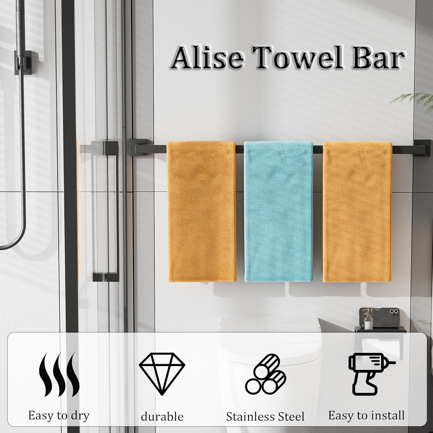 Alise Black Towel Bars,31.5 Inch Towel Holder Towel Racks for Bathroom and Lavatory,SUS304 Stainless Steel Hand Towel Hanger Rail Wall Mount,Useable Length 29.72 Inch Towel Bar, GYT080-B