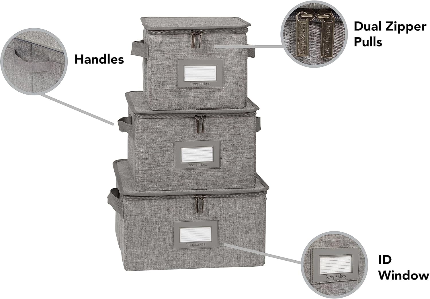 Covermates Keepsakes Dish Storage Box - Stackable, Reinforced Handles, China Storage, Grey Heather