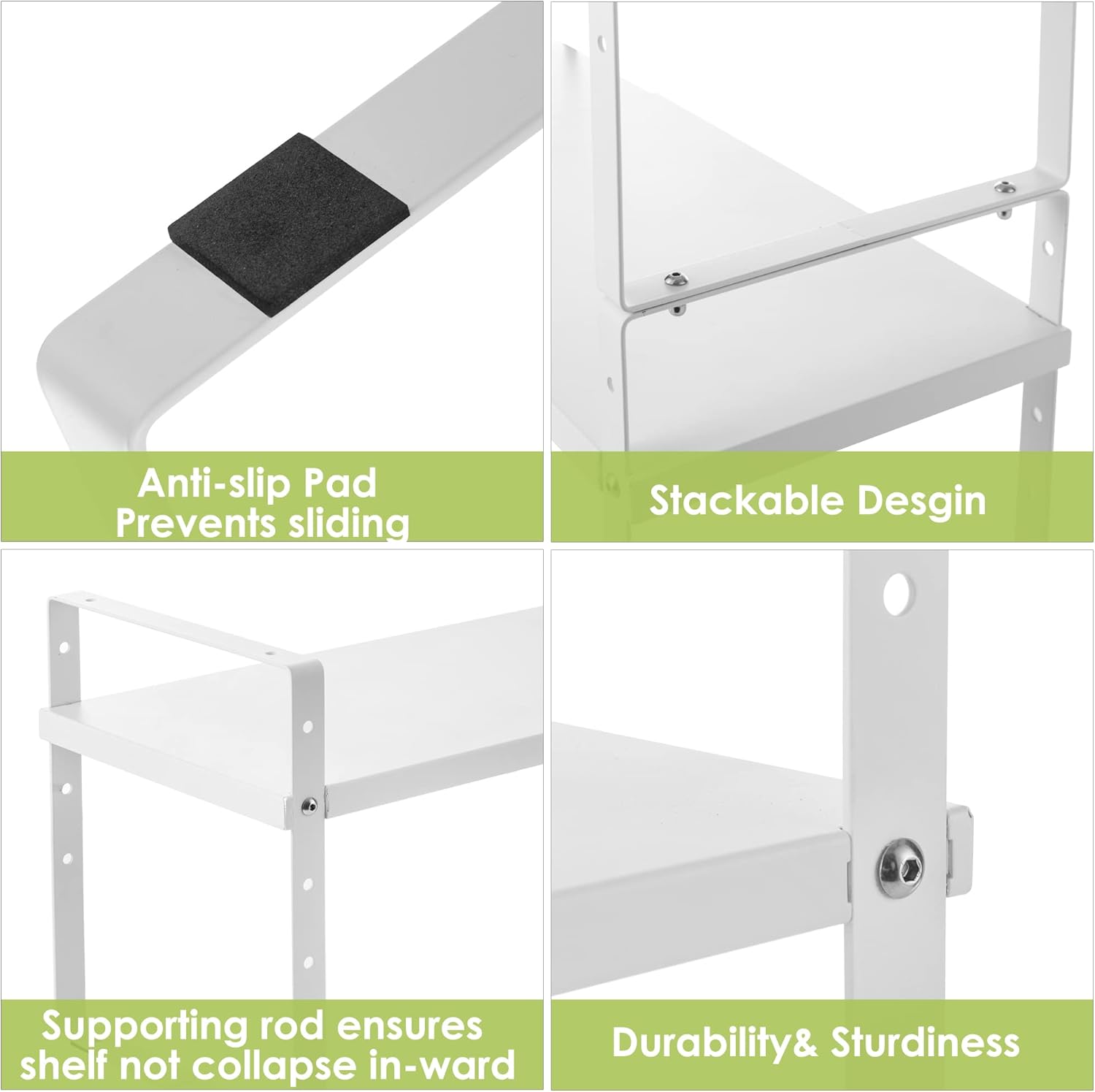 - Easy to Install: Comes with accessories and step-by-step instruction, it will be easy for you to install this storage shelves , no drilling needed! We use non-slip suction feet to prevent the countertop organizer from sliding the table.