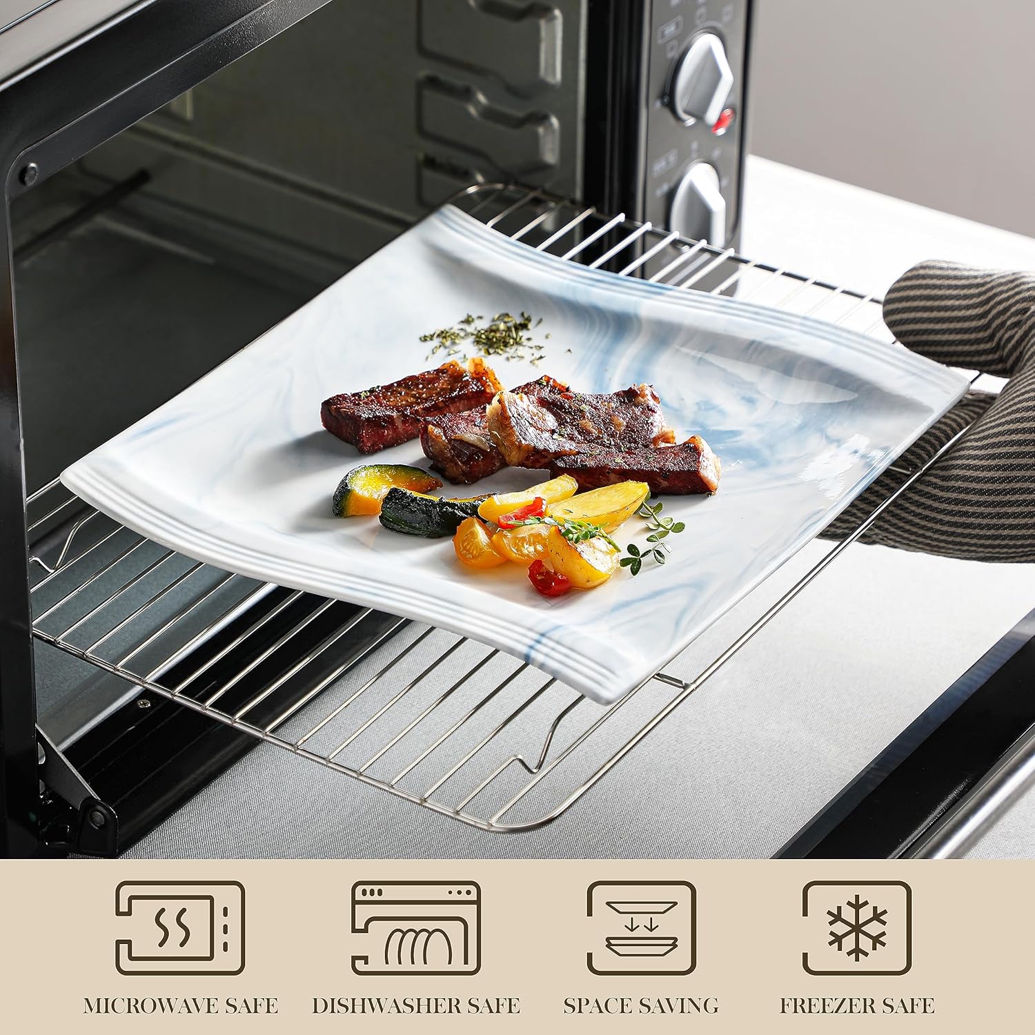 - Safe & Durable -- Crafted with fine porcelain, our square dinnerware sets are non-toxic and harmless, compatible with cold & hot food and safe for daily meal. High-temperature firing process makes ceramic dinnerware set harder, crack-resistant and long-lasting use.