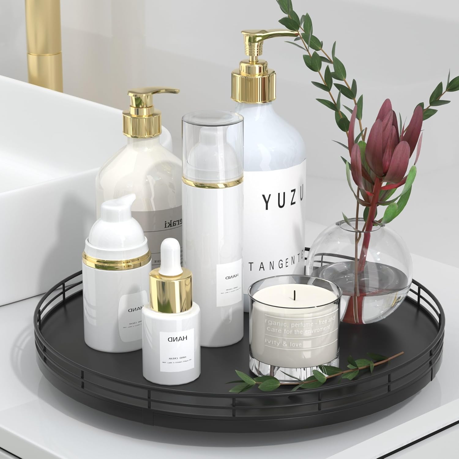 - ๐ ๐๐น๐๐ถ-๐ฃ๐๐ฟ๐ฝ๐ผ๐๐ฒ ๐จ๐๐ฎ๐ด๐ฒ: Perfect for a wide range of occasions and spaces. Whether used as a centerpiece table decorations, a vanity tray in your bathroom, or condiment organizer on your kitchen, this versatile round tray adapts to your needs in any room